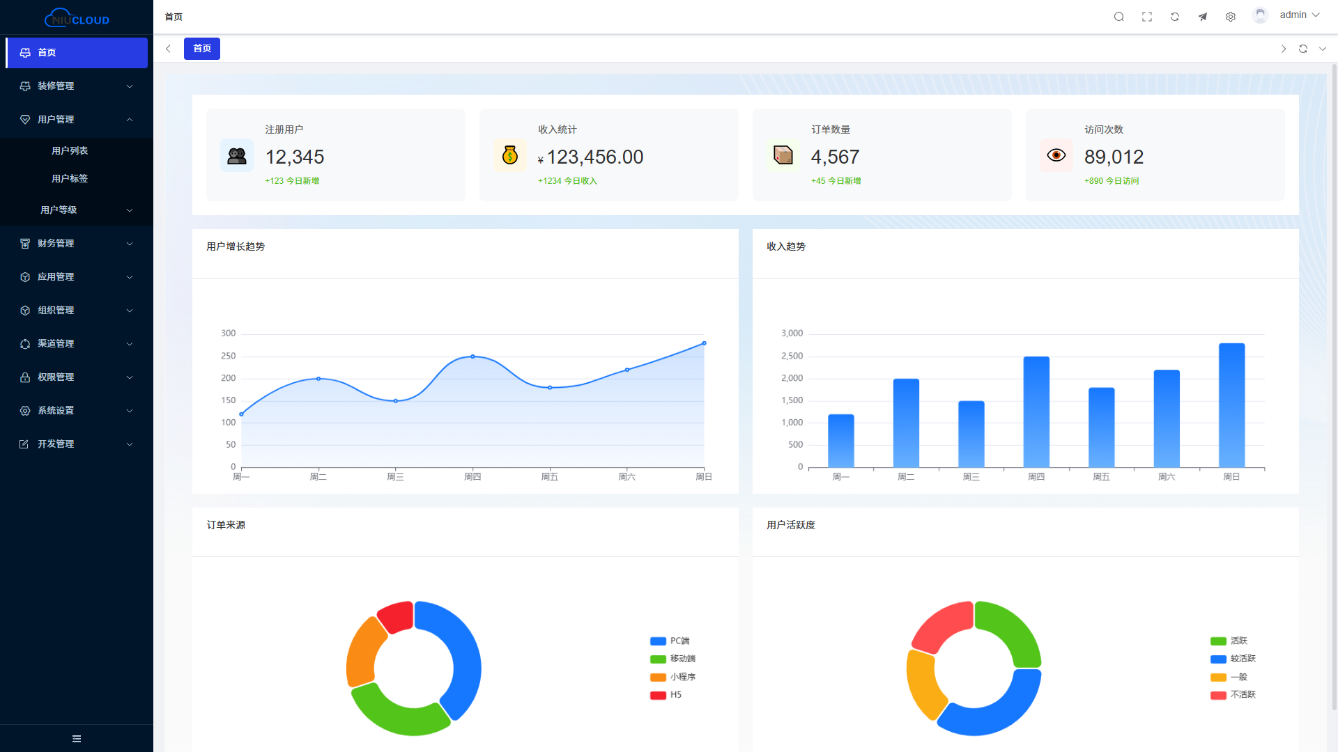 - 多站点管理:支持SAAS模式,可管理多个站点