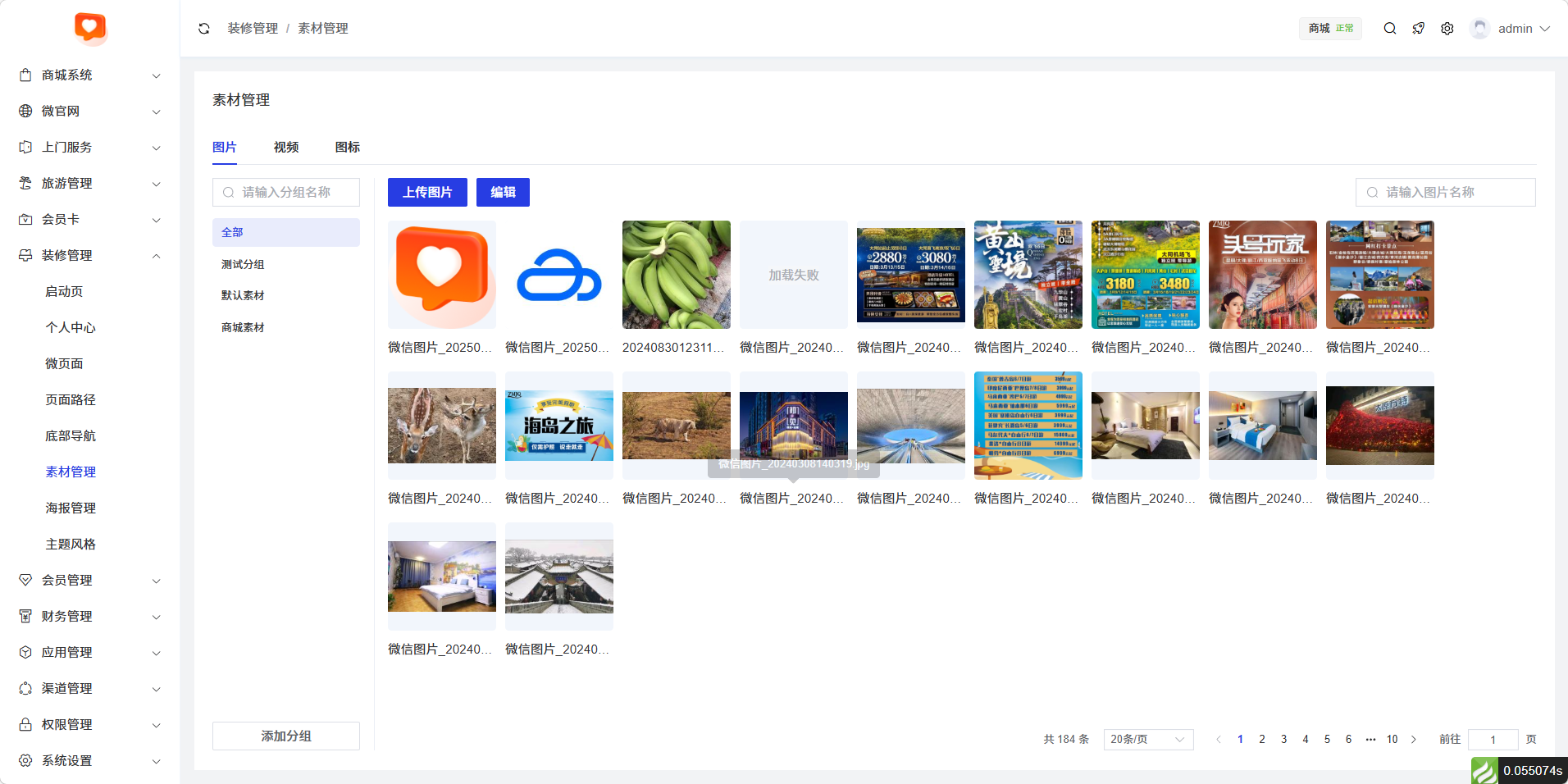 素材管理这里存放着上传后的图片/视频的所有内容,可点击编辑选择图片的下的...或者选择快速点击图片/视频内容可进行查看移动删除,也可以在此处添加分组方便管理图片。