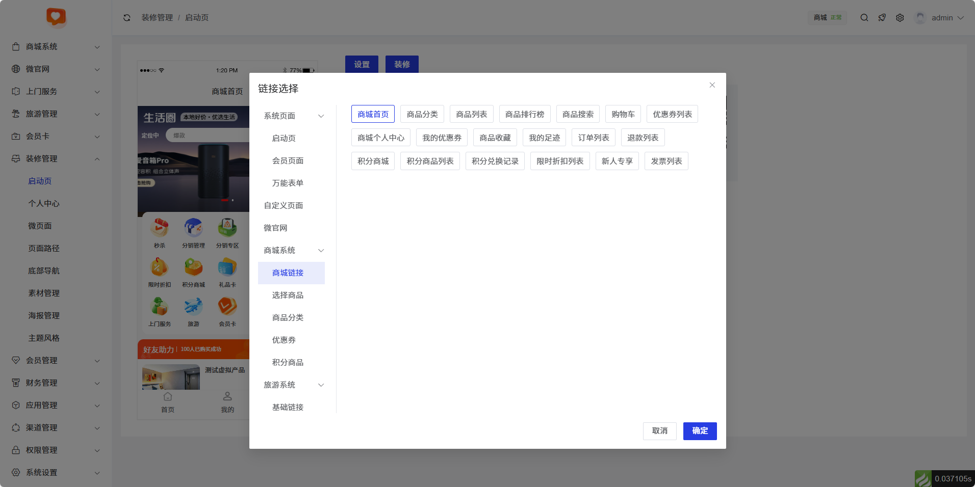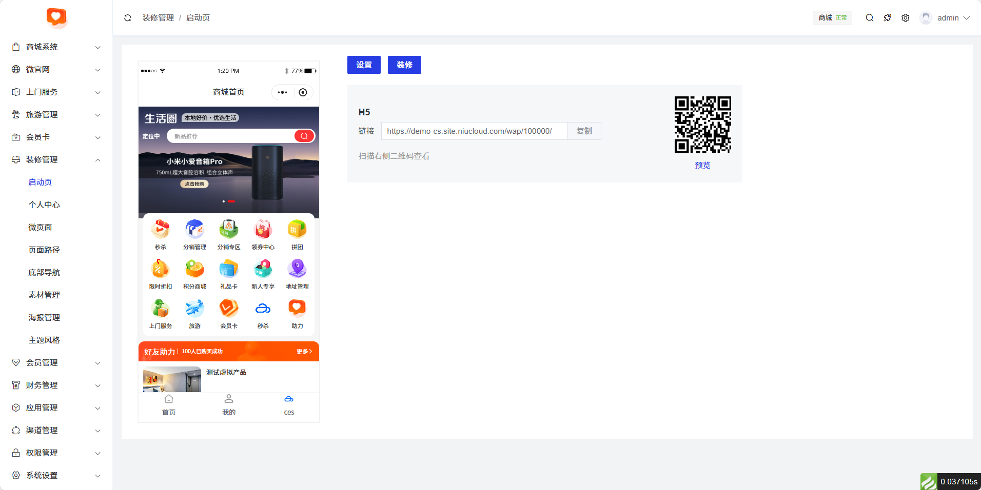 启动页可直接查看到首页装修内容,也可以直接扫描二维码进入到手机端查看。