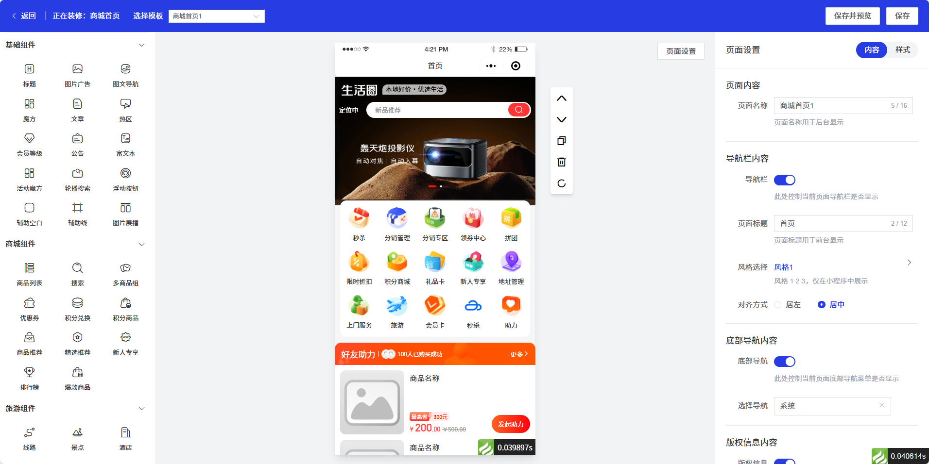 微页面可在装修时快速插入新页面,更加方便快捷节省页面设置的时间。