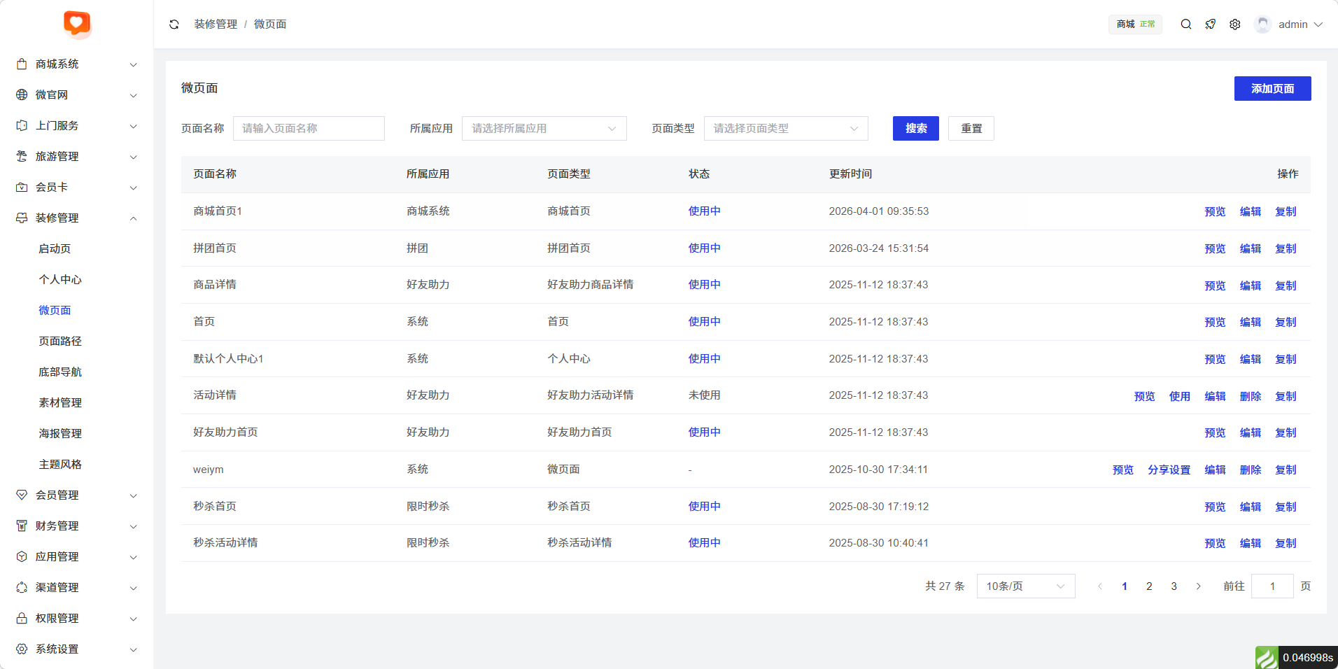 点击编辑可快速跳转到已创建好的微页面,进行编辑。
