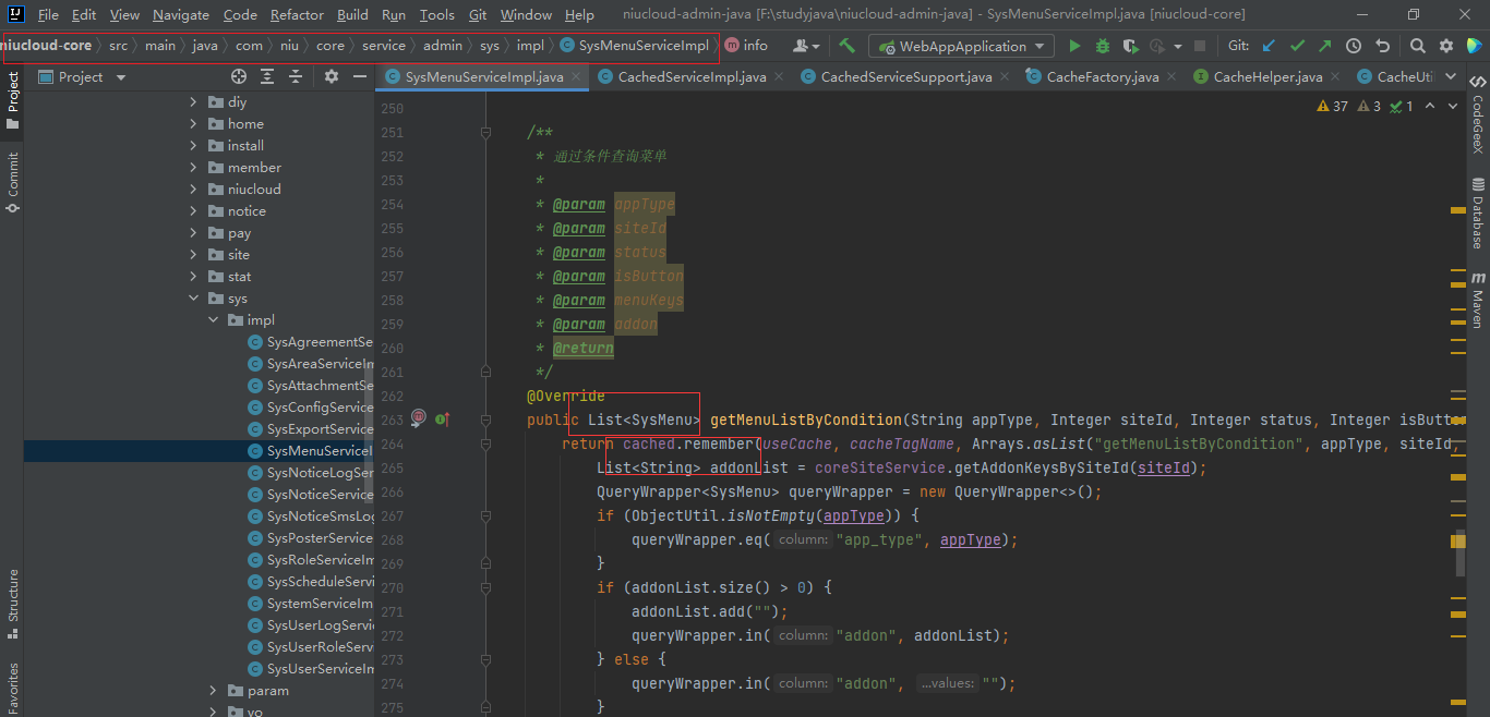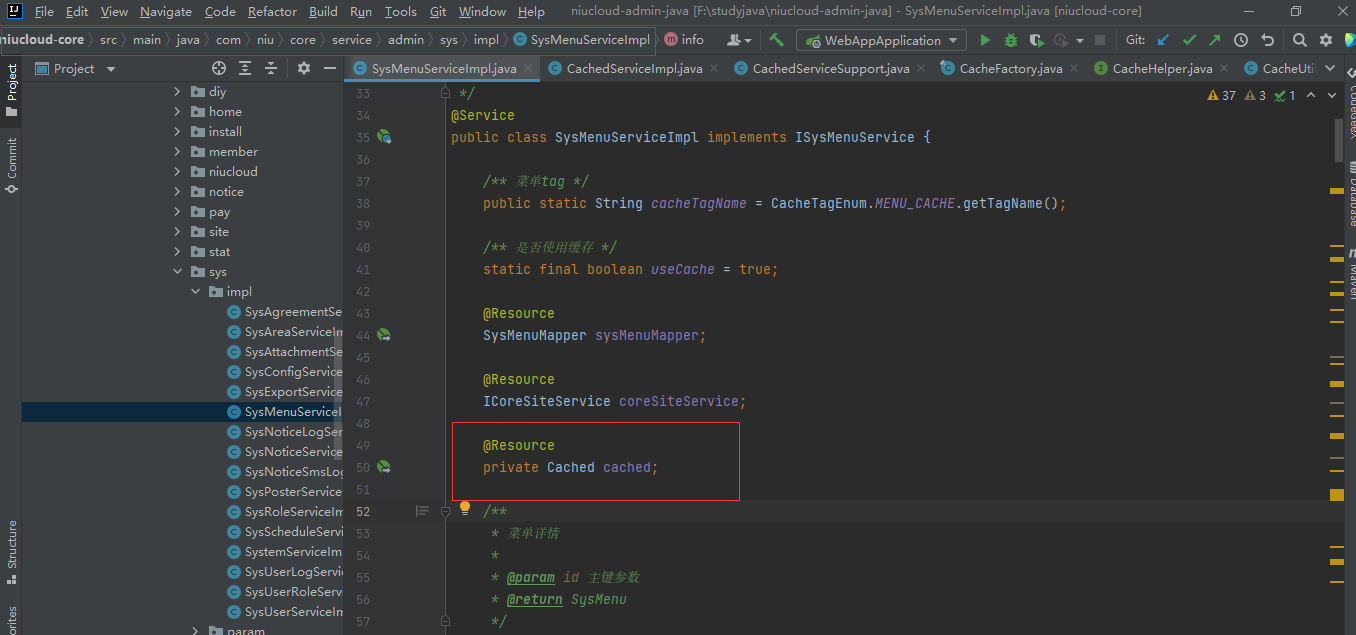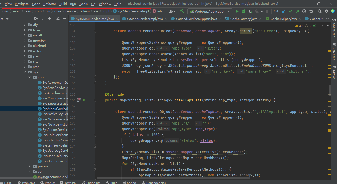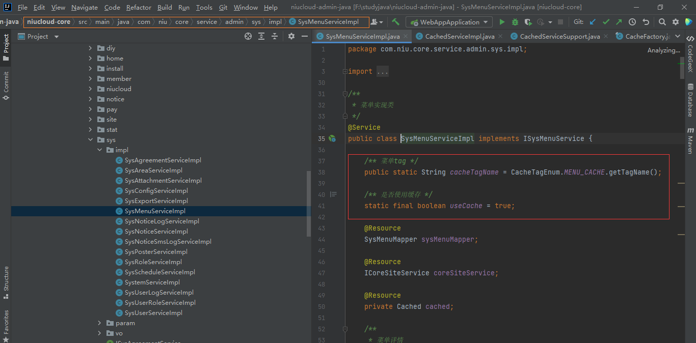 下面通过 menuservice 的缓存来说明
