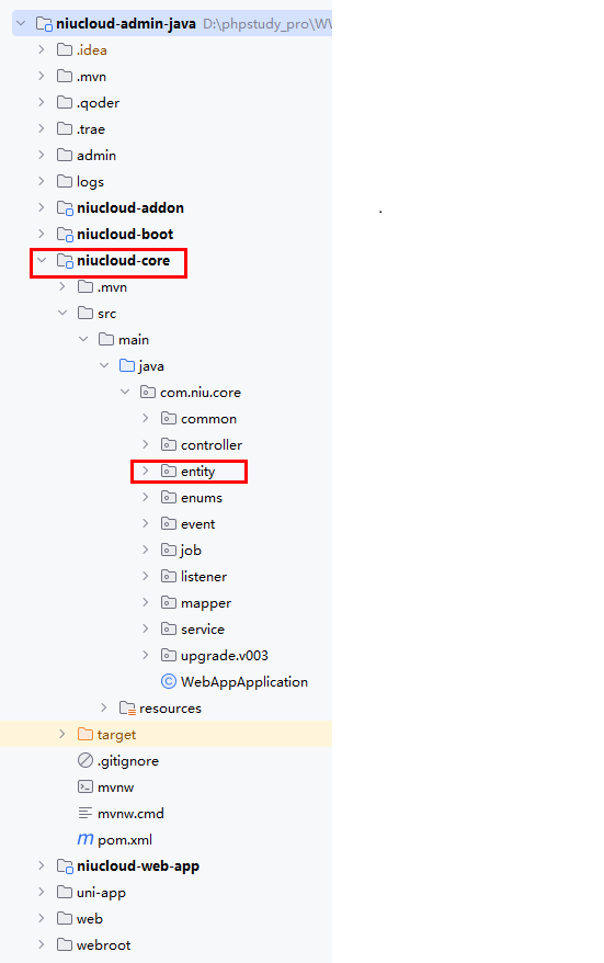 实体类遵循 mybatisplus 的书写规范,在对应系统或插件的 entity 目录下。实体类是项目数据层的基础,良好的实体类设计有助于提高代码的可读性、可维护性和性能