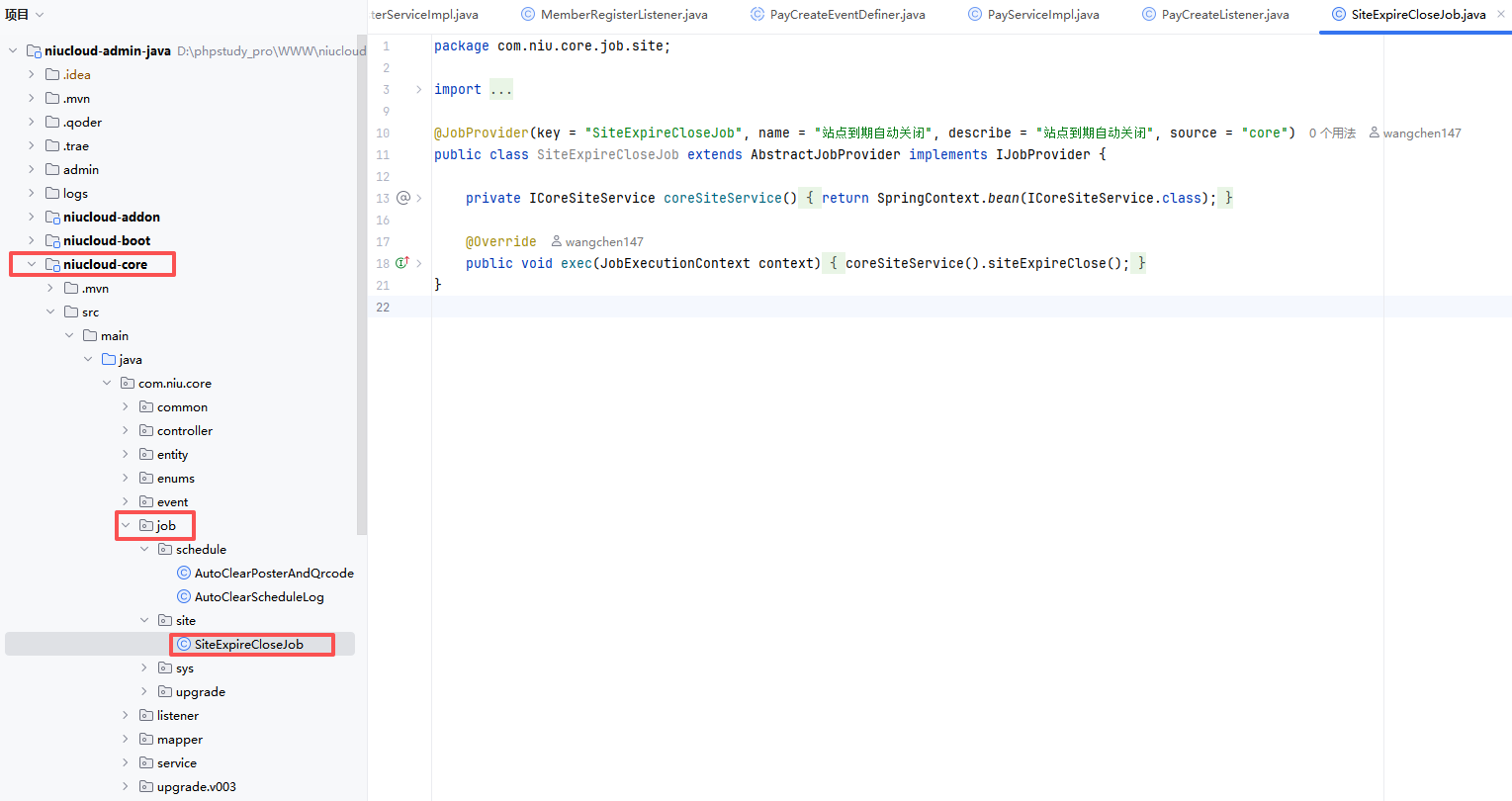 @JobProvider(key = "SiteExpireCloseJob", name = "站点到期自动关闭", describe = "站点到期自动关闭", source = "core")任务类继承AbstractJobProvider,实现接口IJobProvider,例如站点关闭任务