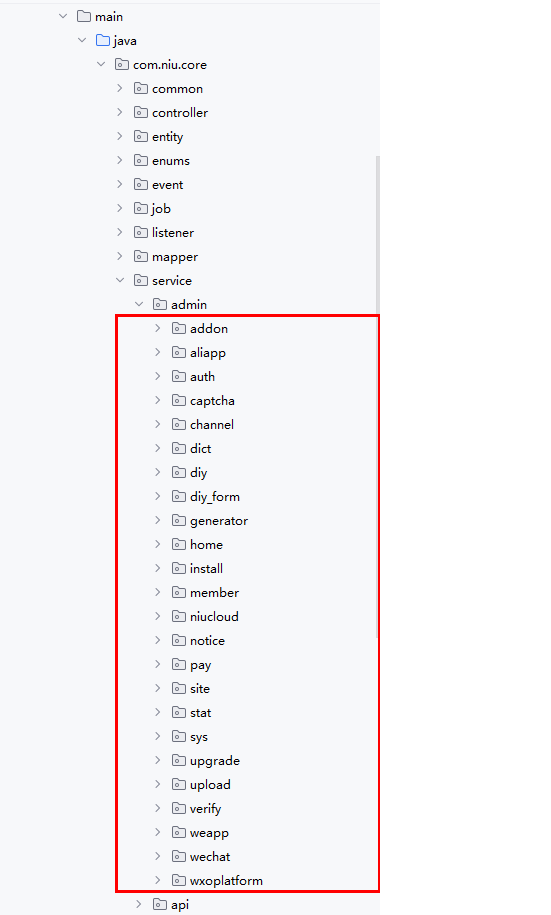 ├── admin/ # 管理后台API相关业务逻辑