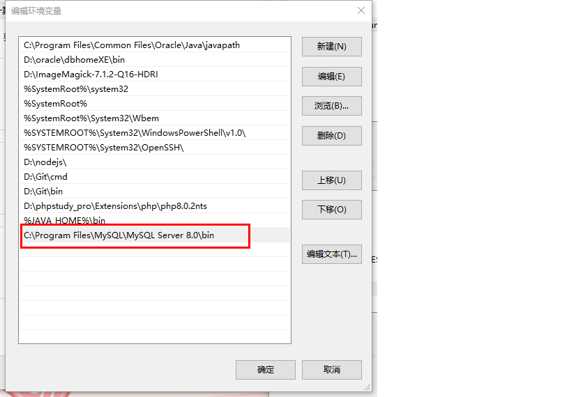 点击「新建」,粘贴你的 MySQL 的 bin 目录路径(如C:\Program Files\MySQL\MySQL Server 8.0\bin)