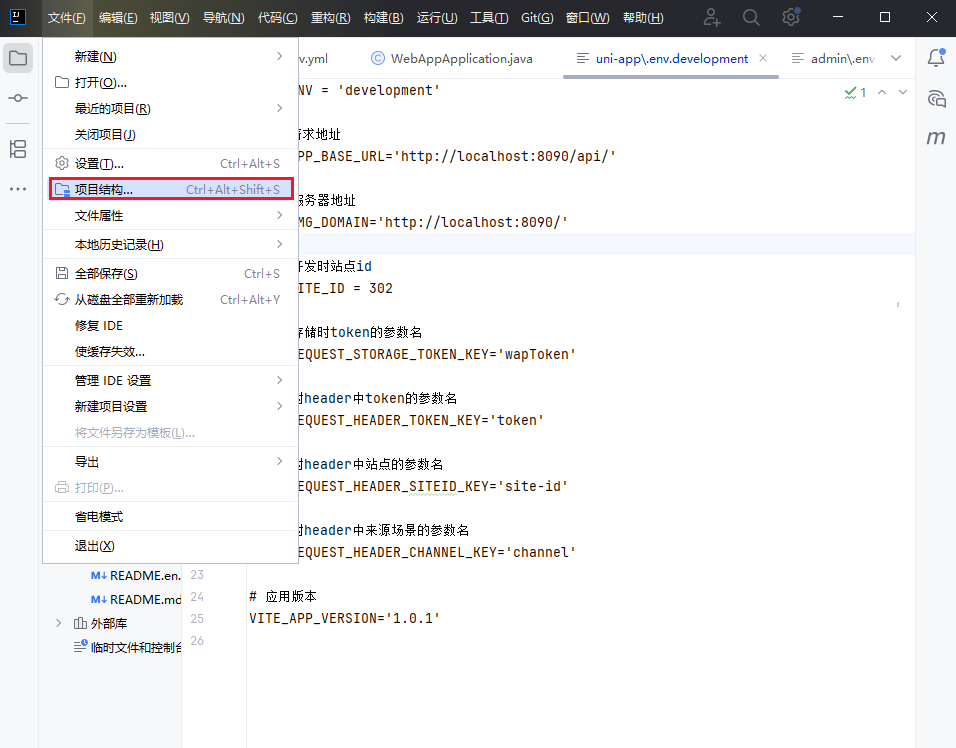 导入代码到 idea ,选择 file → open ,将代码导入系统