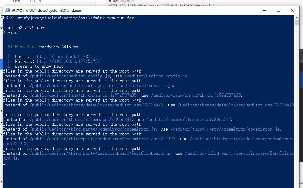 运行admin前端