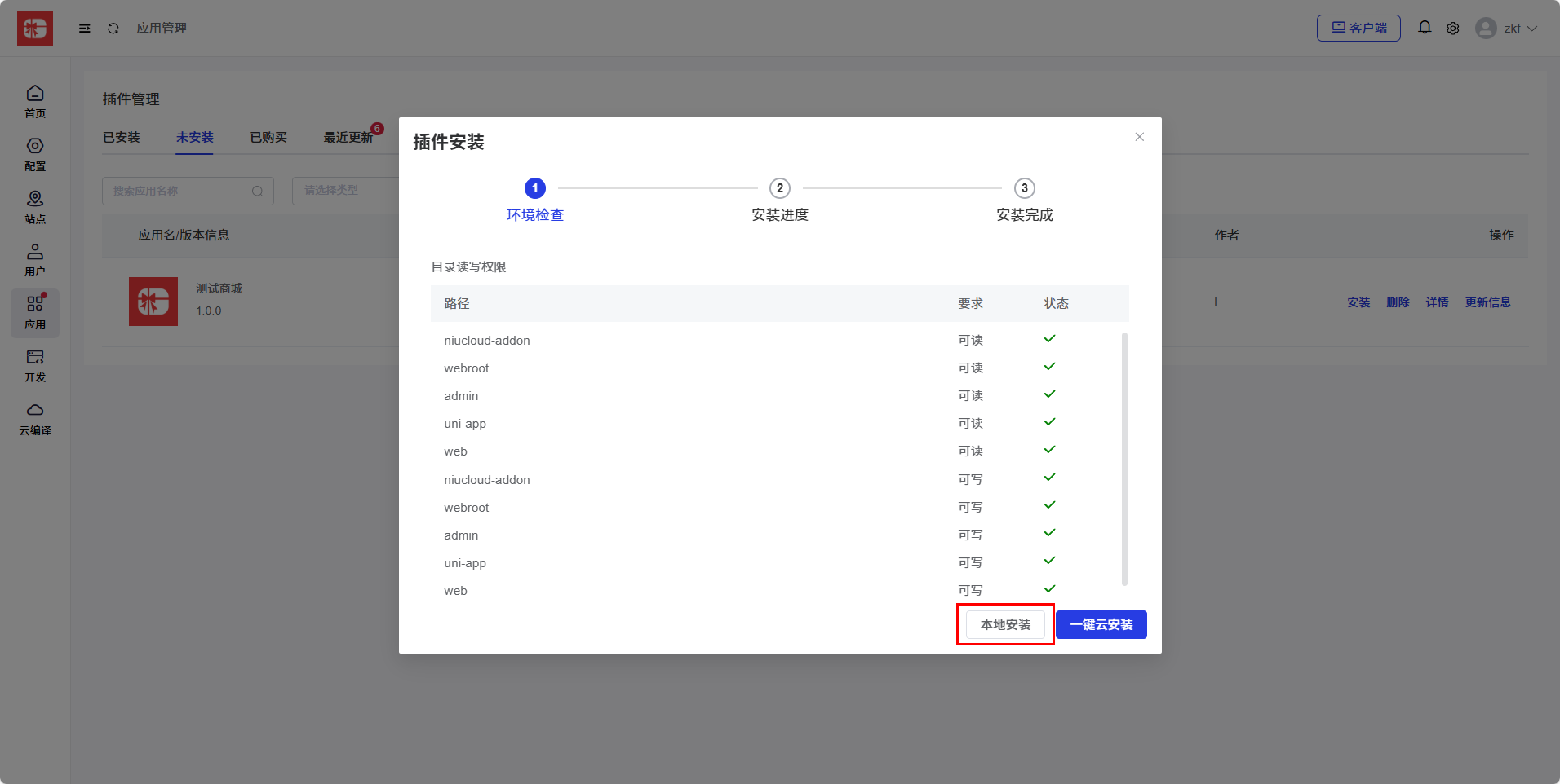 niucloud 系统是 saas 系统,支持多应用多站点设计,系统框架安装之后可以安装应用,创建套餐与站点,本节重点讲解插件的安装,后期应用下载以及开发者开发插件都是这个步骤