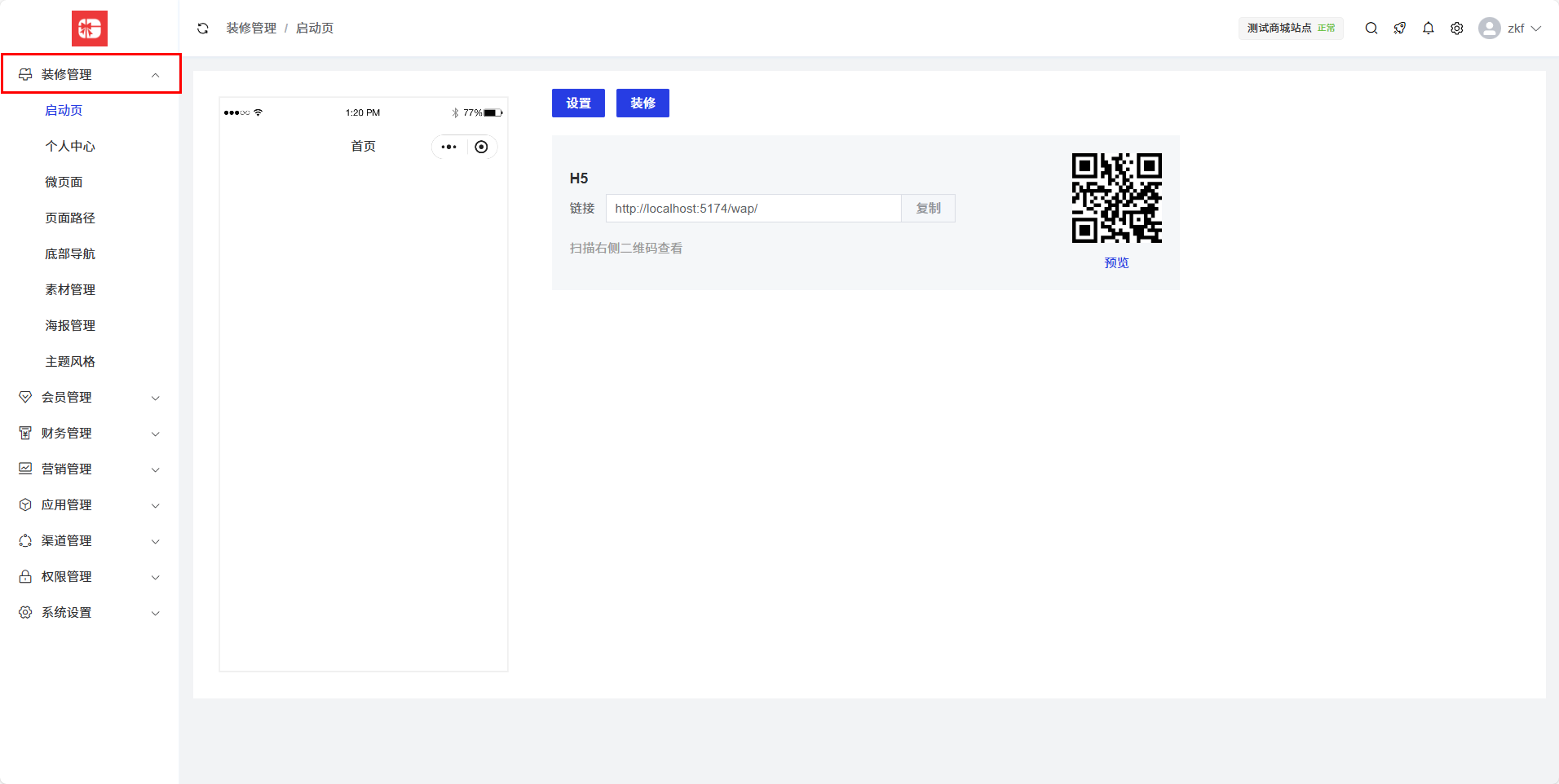 注意:系统装修是自定义的,后续章节我们讲解关于自定义装修相关的开发