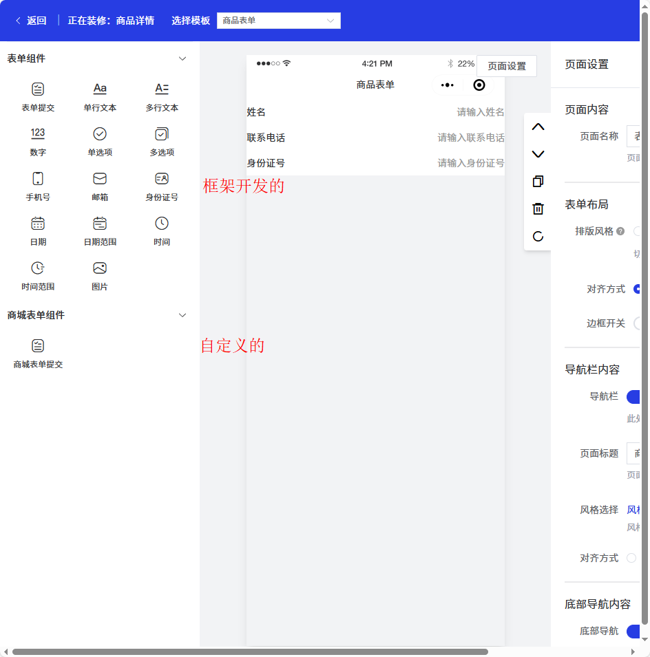 在装修自定义表单时,可以使用表单组件,也可以使用自定义组件,两者都可以搭配使用