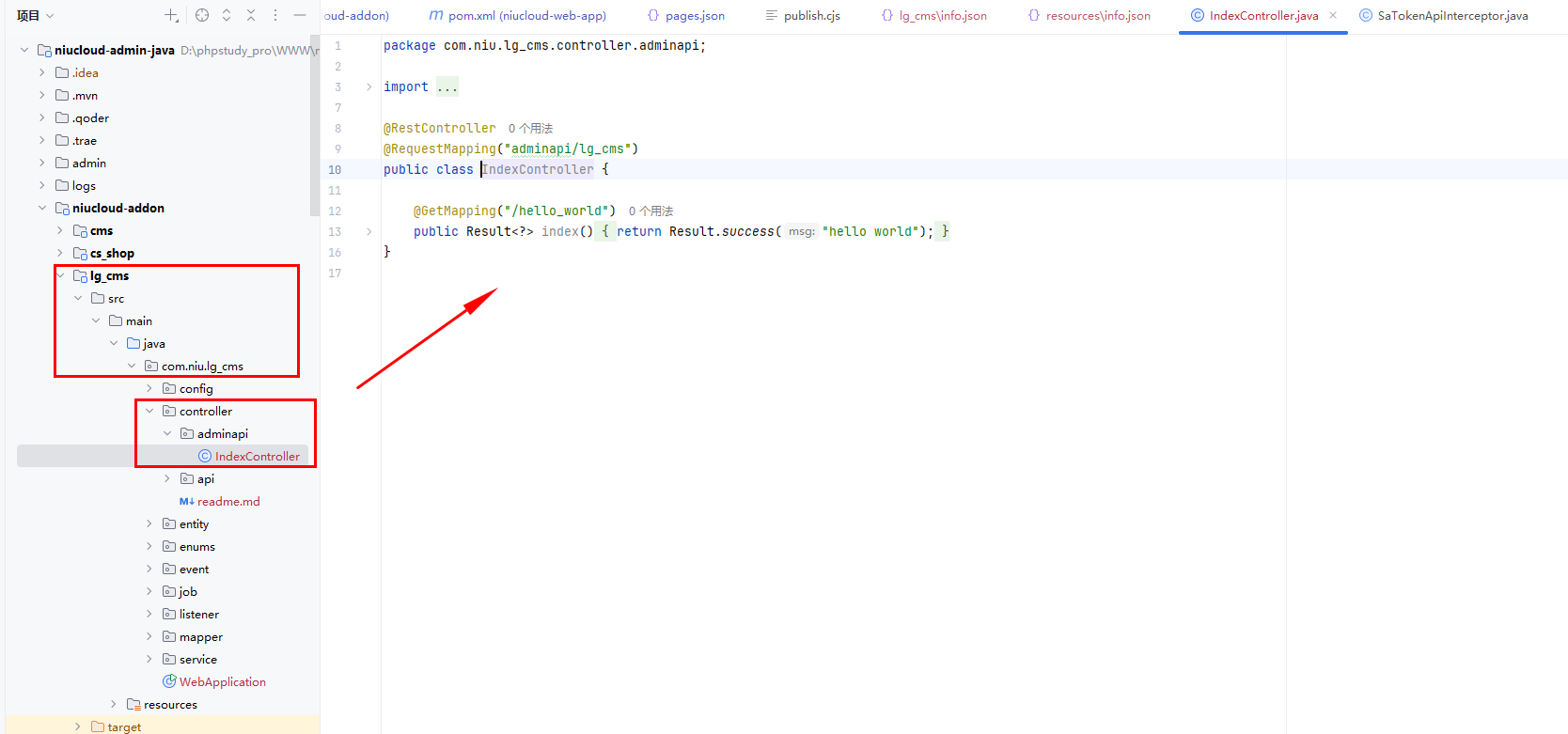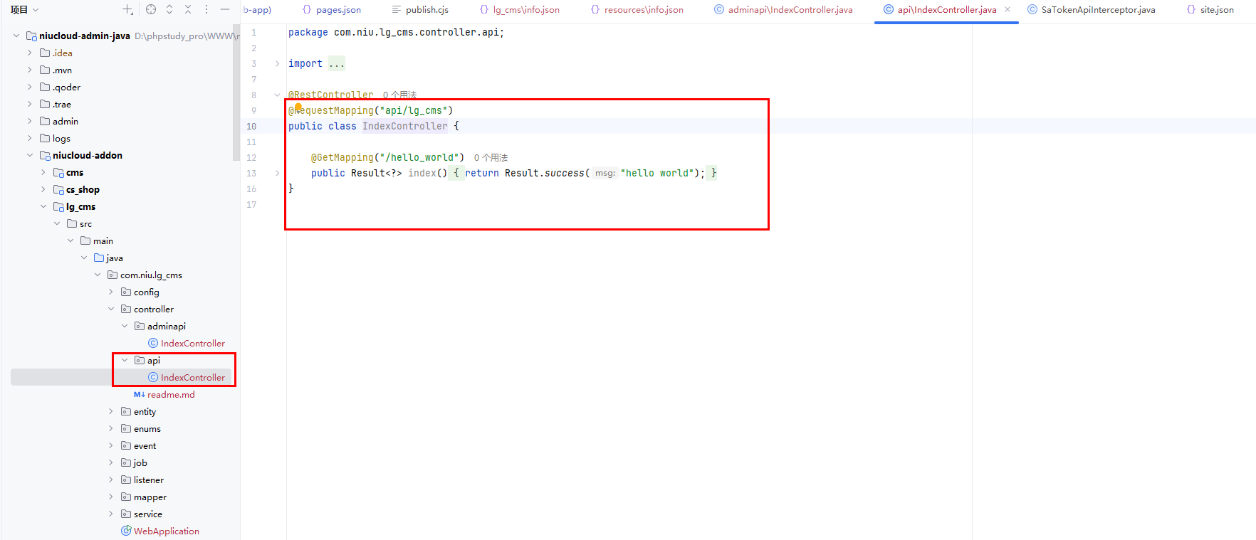 下面是通过新建插件生成的后台接口基础文件,后续开发可以在此基础上进行开发,也可以在代码生成器生成的代码中继续开发