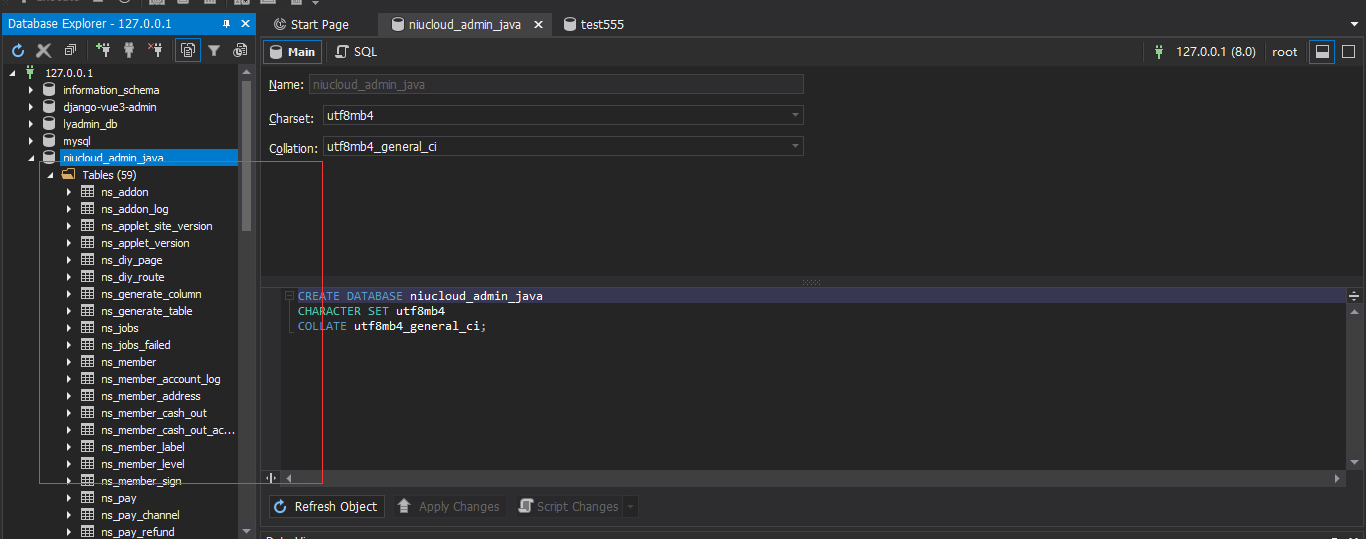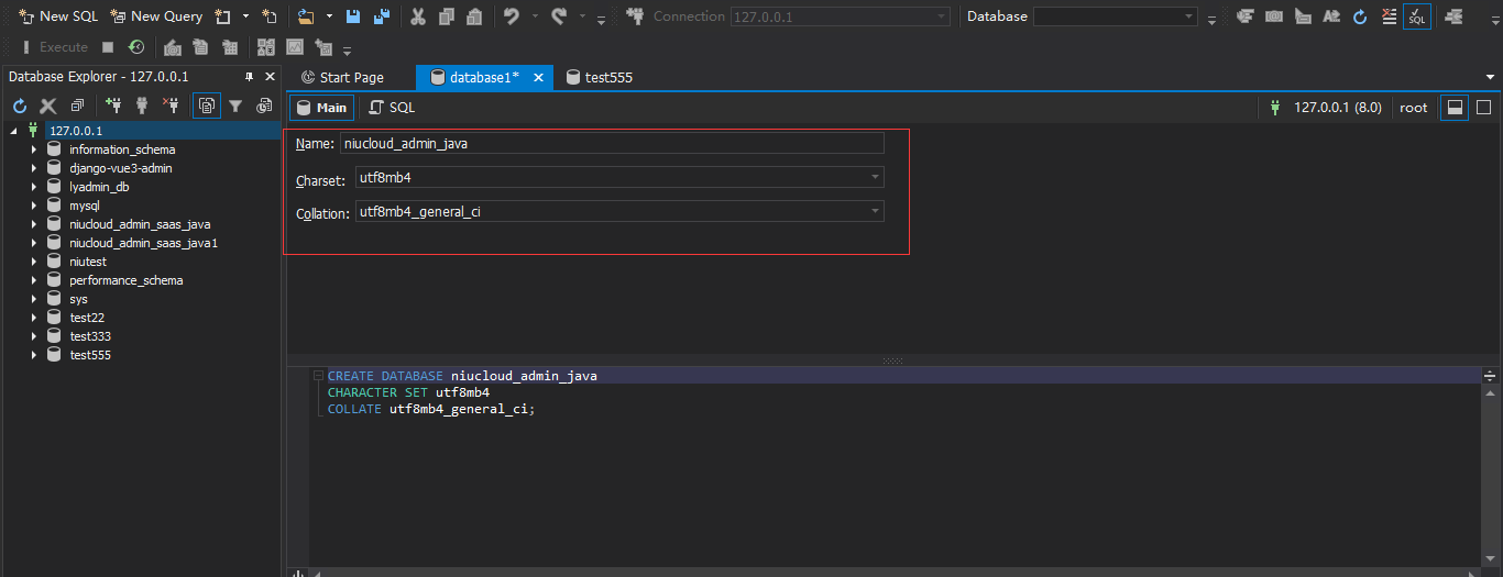 创建 niucloud-admin-java 使用的数据库