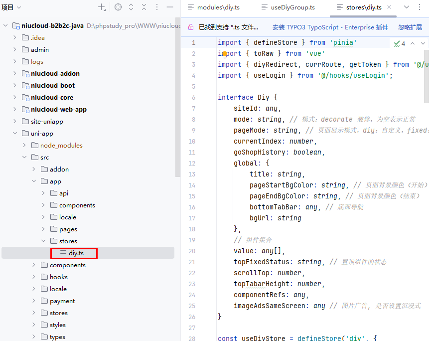 文件位置:uni-app/src/app/stores/diy.ts