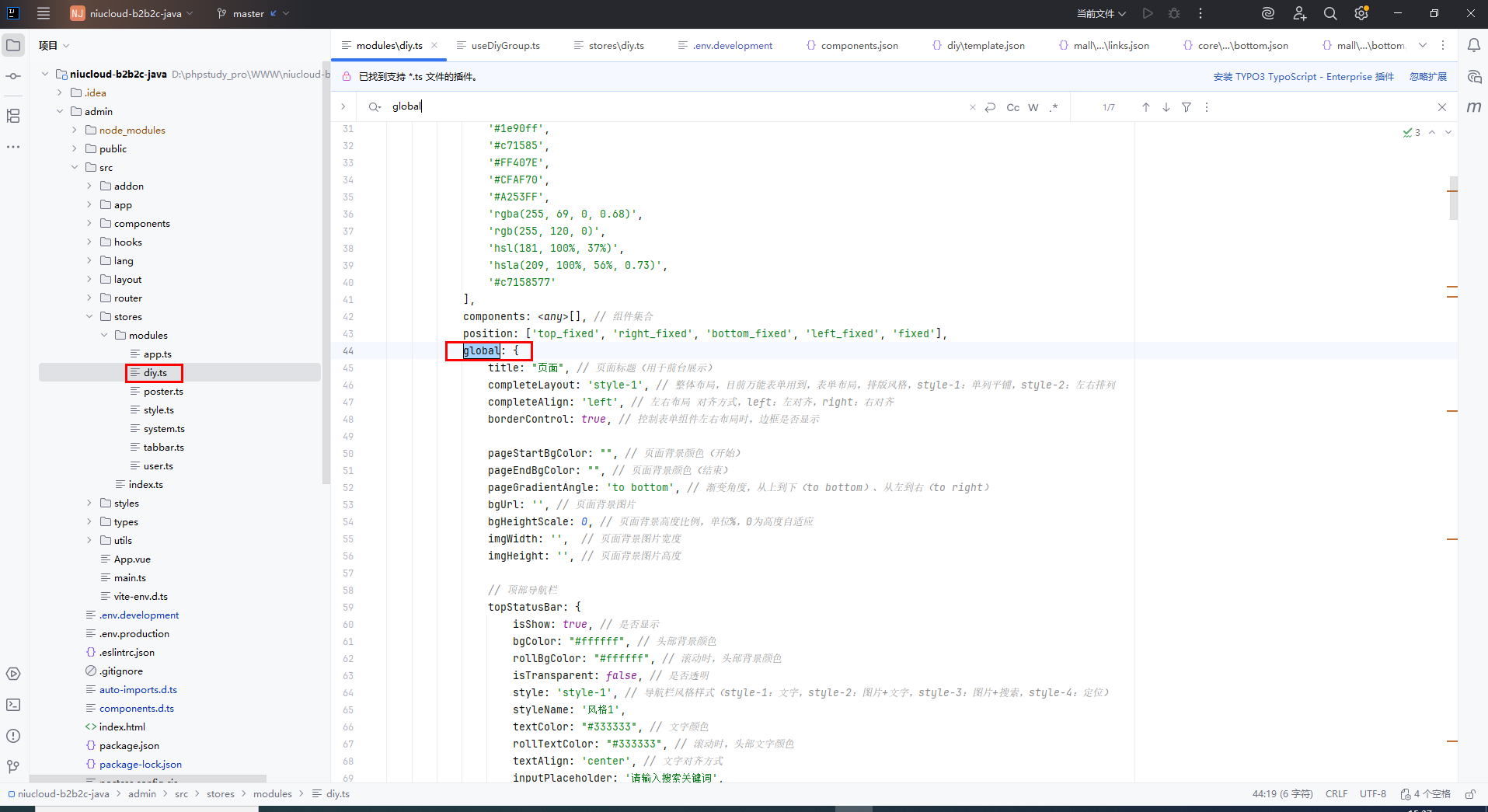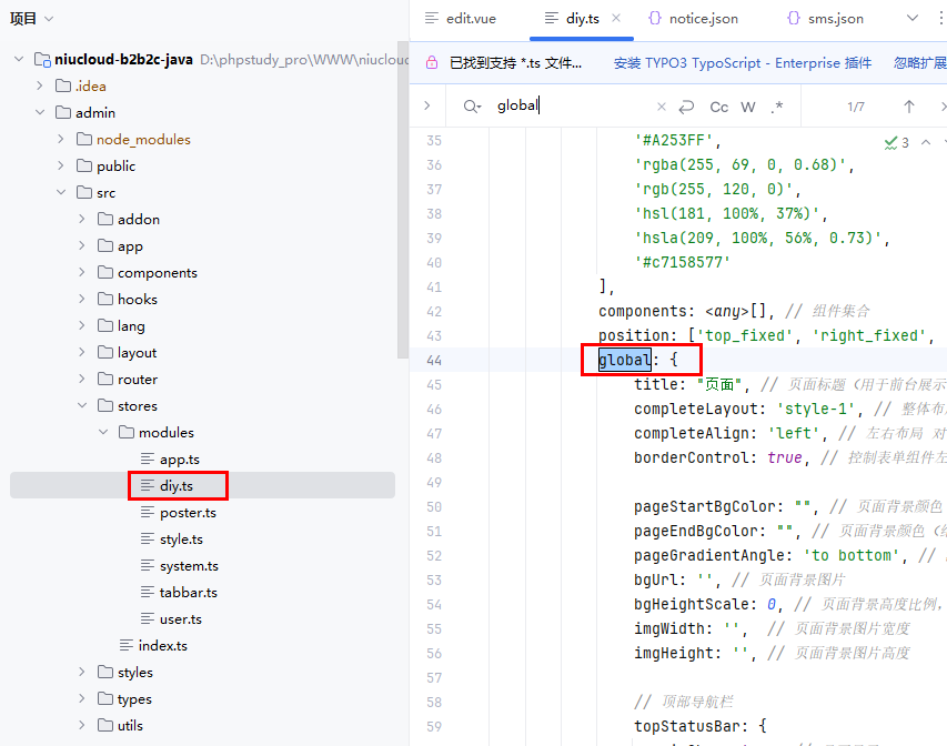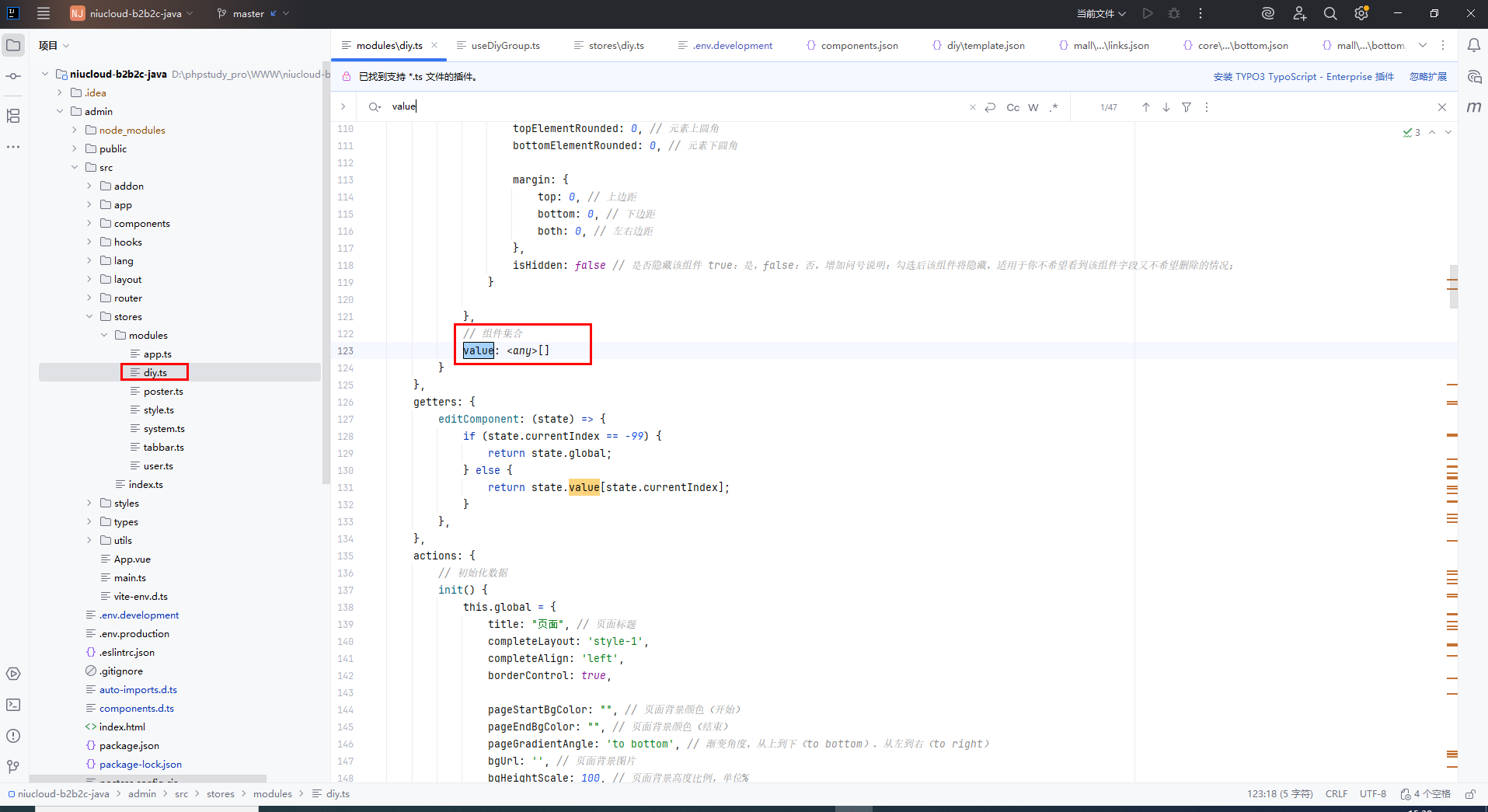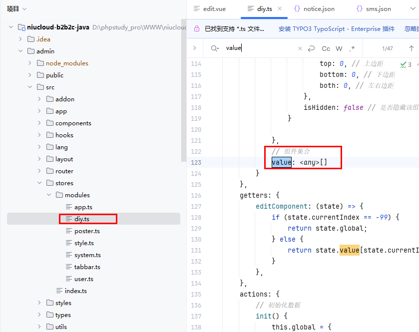 文件位置:admin\src\stores\modules\diy.ts