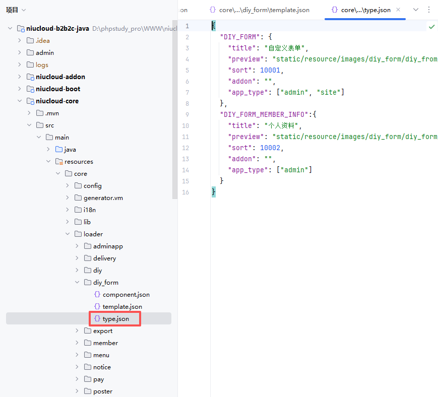 文件位置:niucloud-core/src/main/resources/core/loader/diy_form/type.json