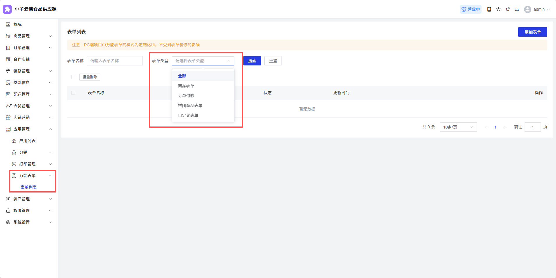 系统框架开发的表单类型:自定义表单、个人资料