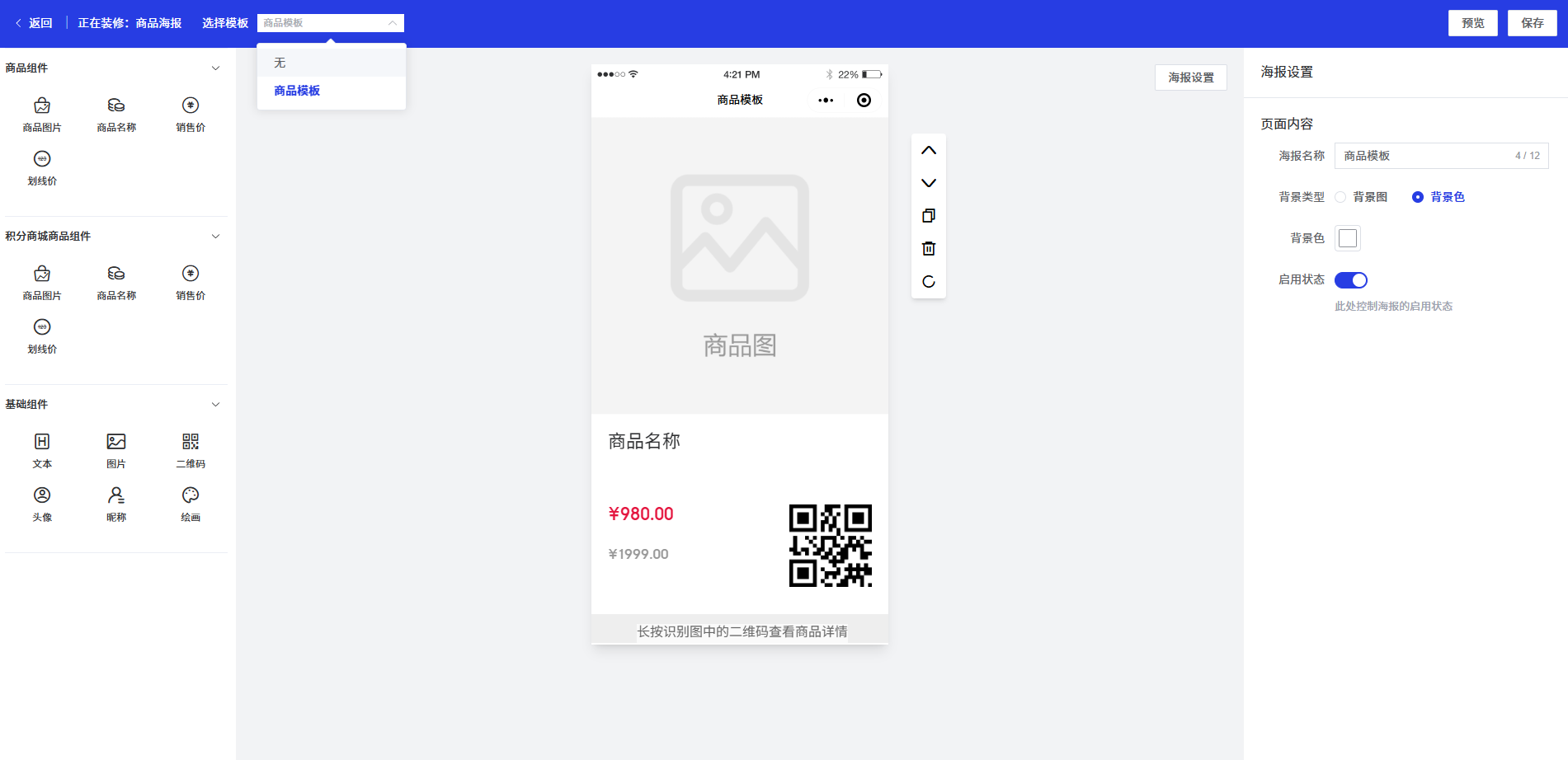 每种海报类型可以定义 N 个海报模板,效果图如下
