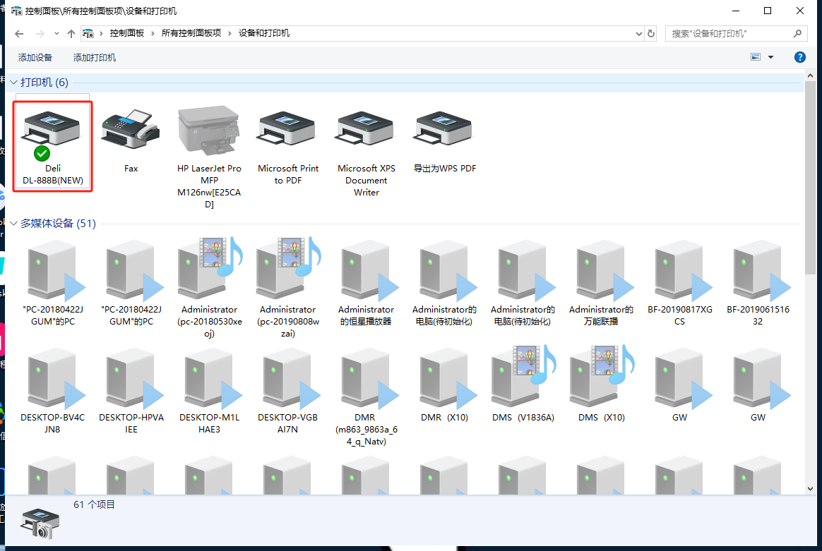 安装完成后,打印机会在我的设备中展示(可右击选择设置为默认打印机,后面可以直接打印)