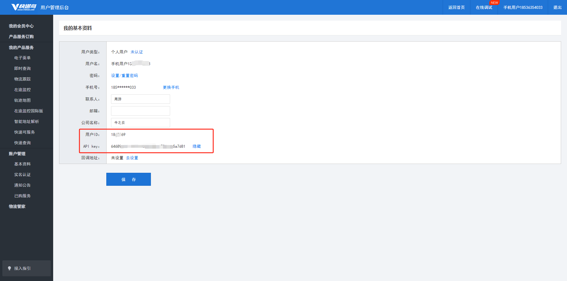 将用户ID和API key填写到后台