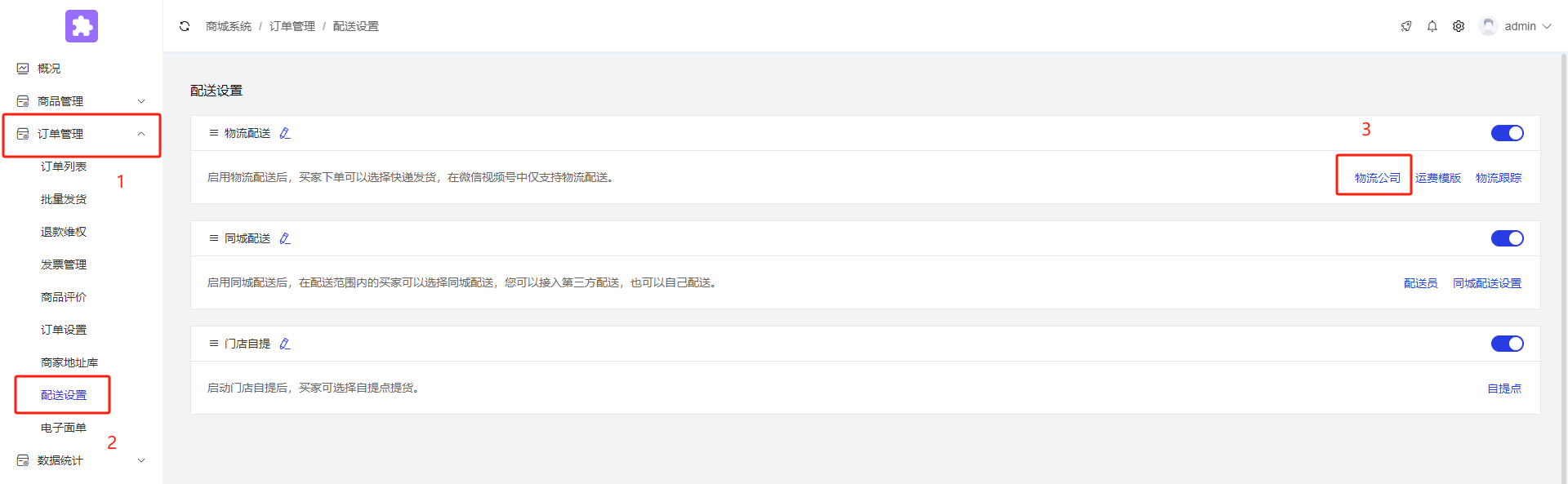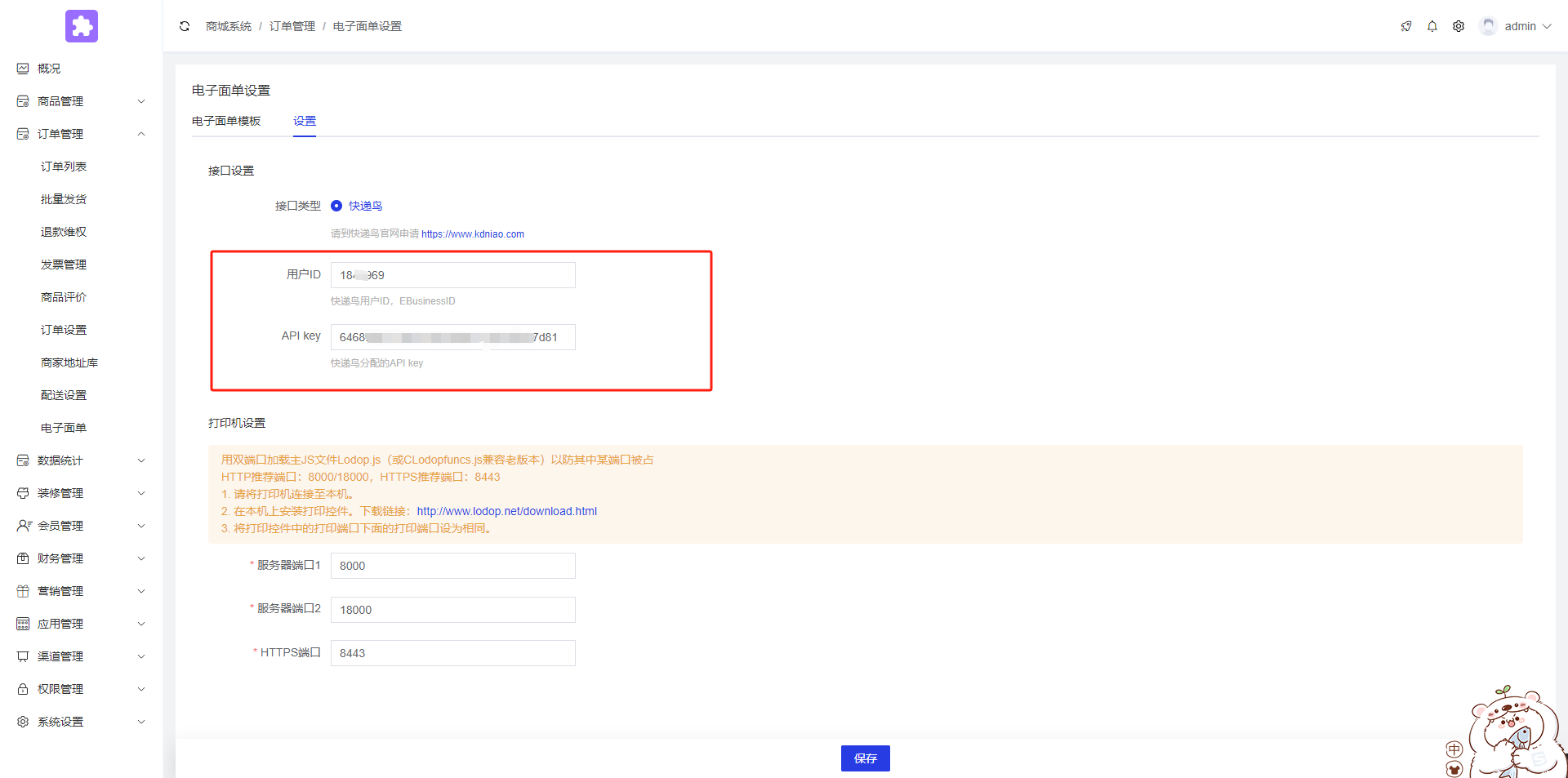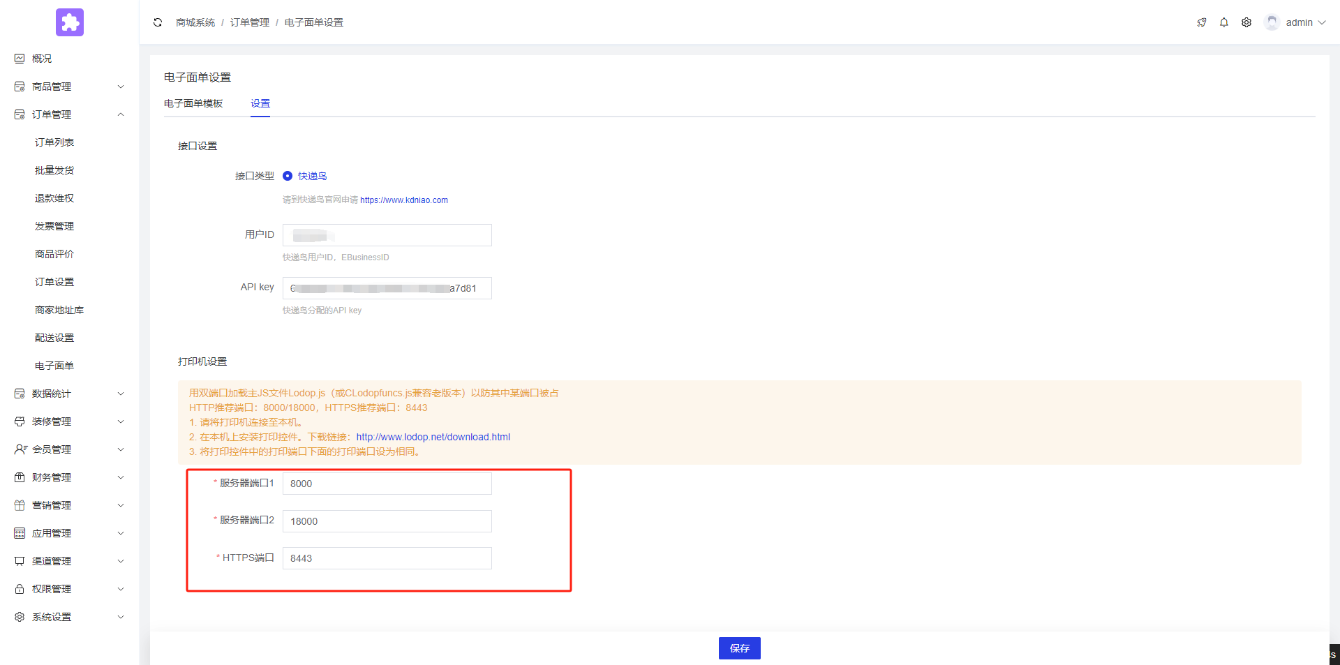 后台点击订单管理--电子面单--设置