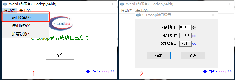注意:后台填写的服务器端口1,2以及HTTPS端口号需要与下载打印控件程序一致
