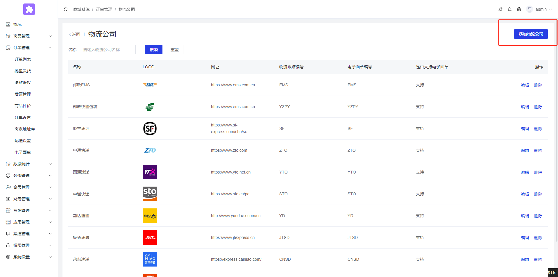 1.在后台添加快递公司![]() | 2.点击添加物流公司![]() |