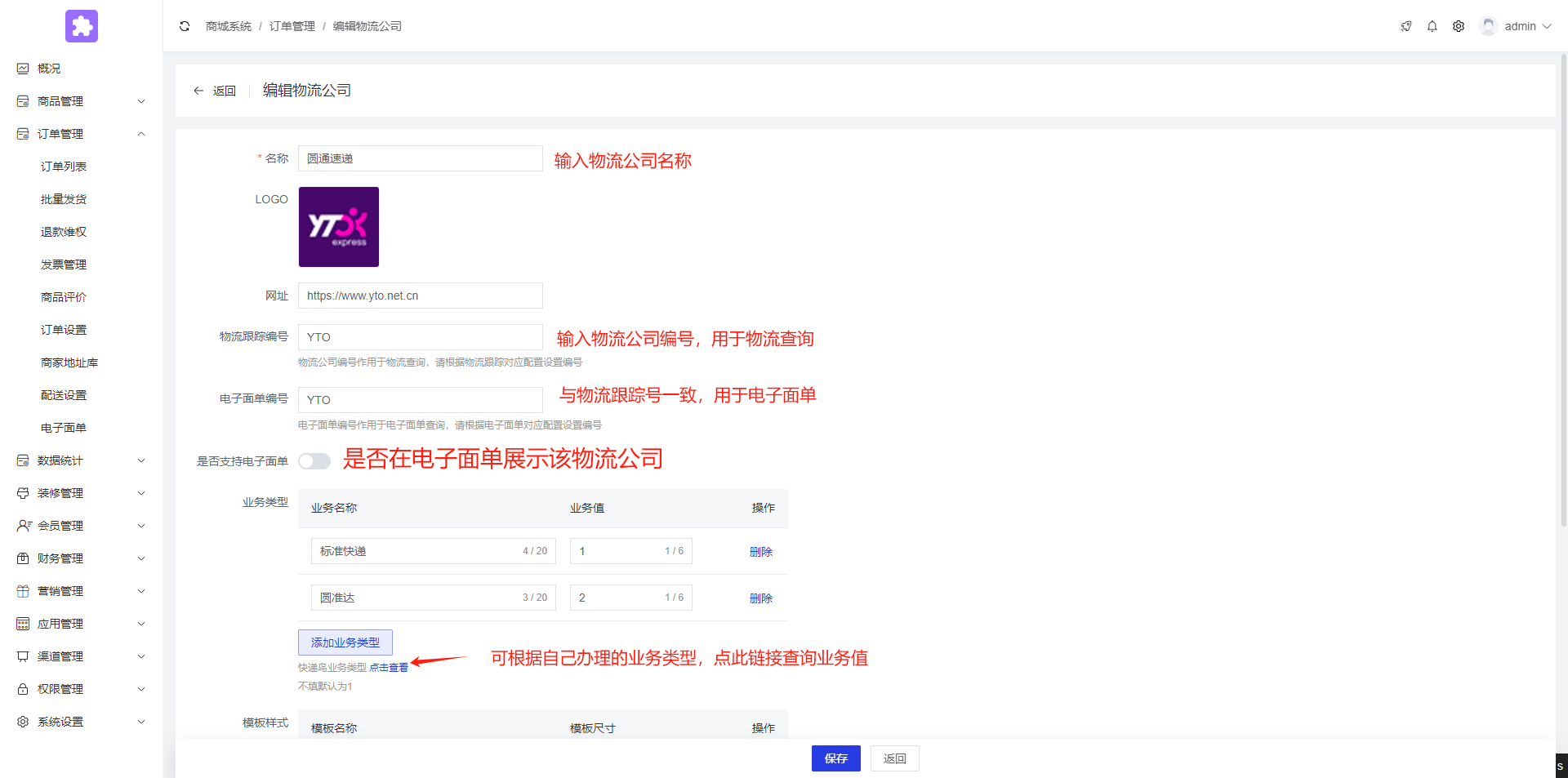 3.设置电子面单模板