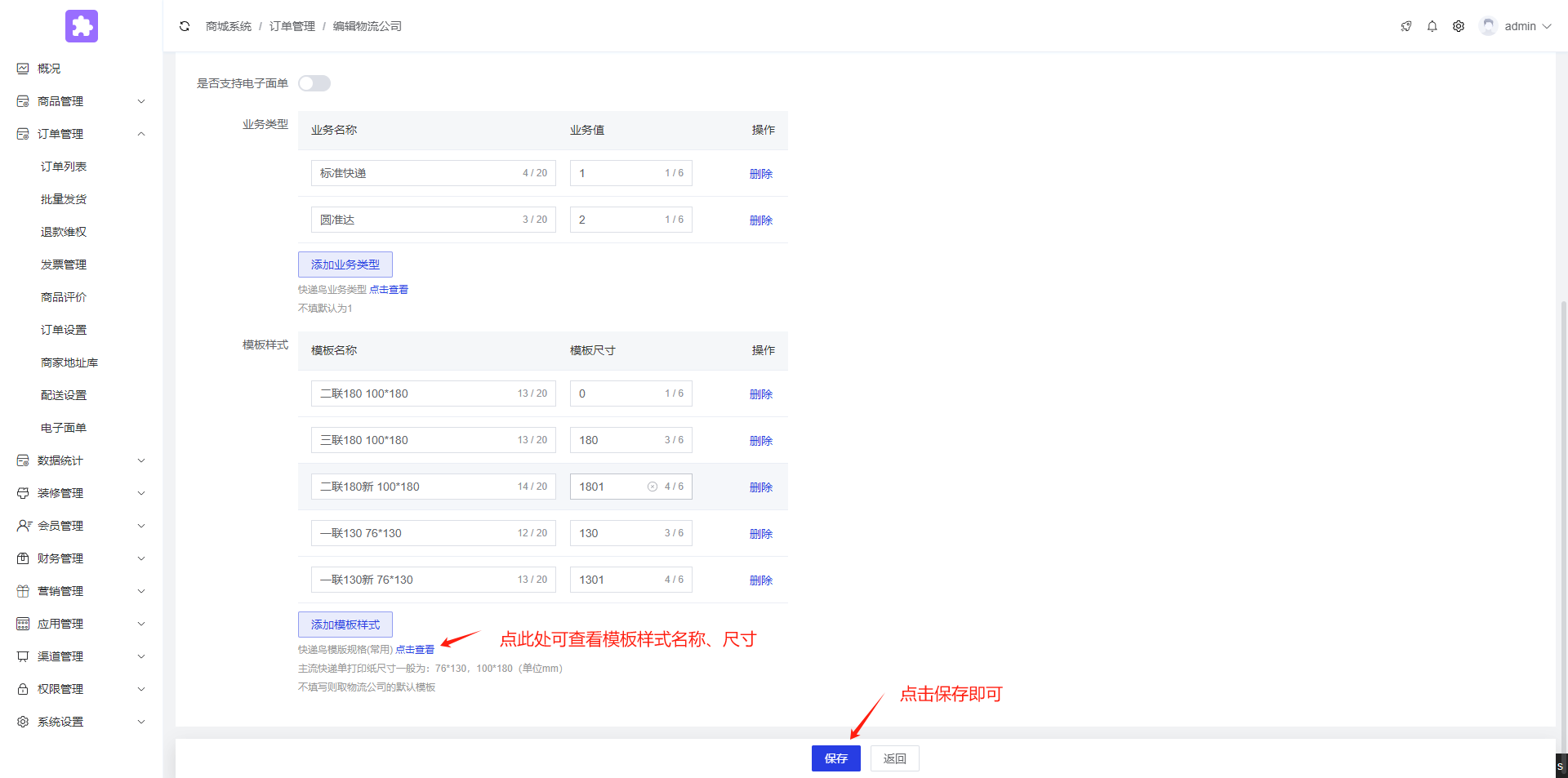 3.输入物流公司信息![]() | 4.点击保存![]() |