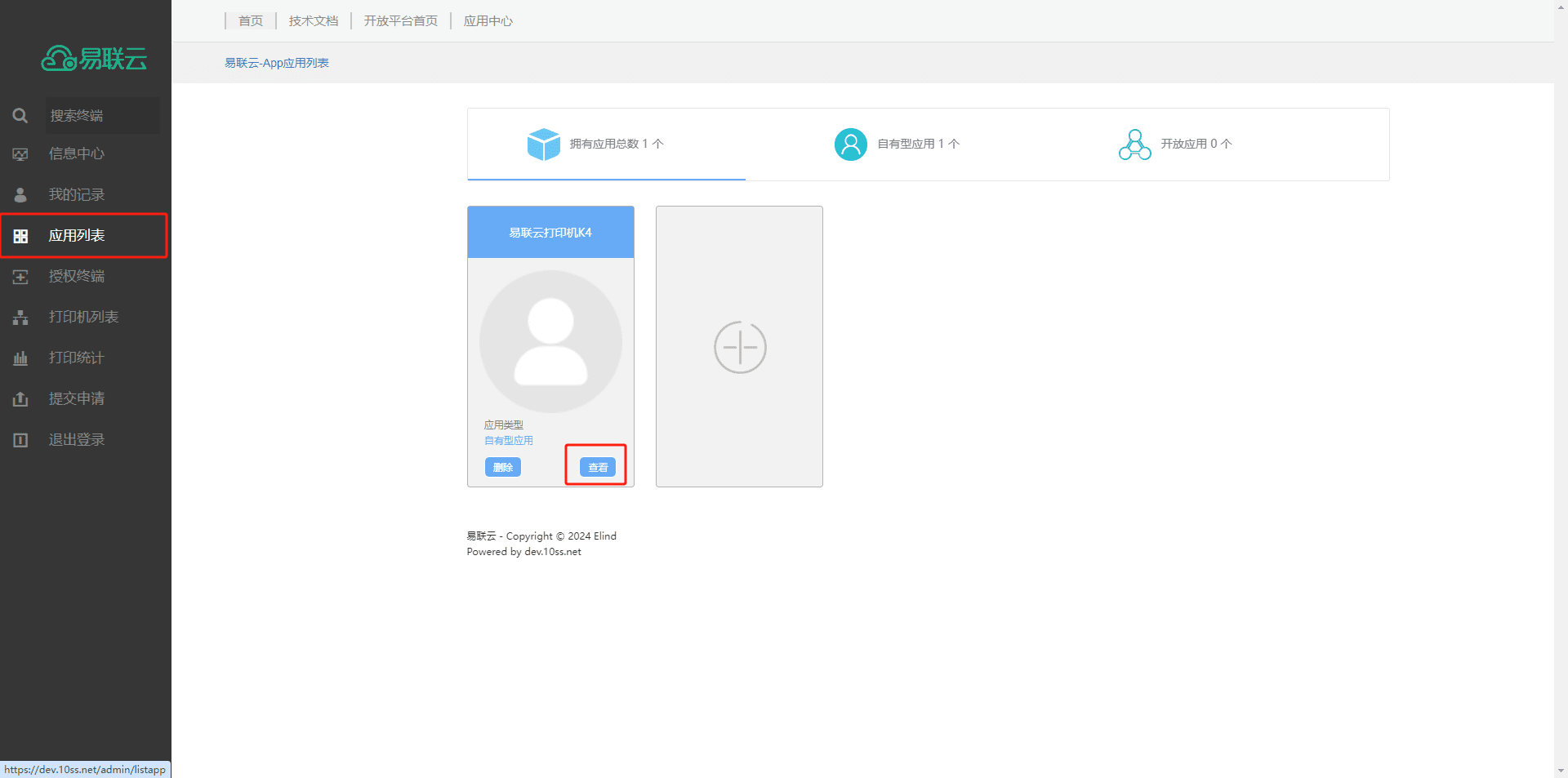 8.在新打开的页面在侧边栏选择应用列表,选择刚添加的打印机,点击查看
