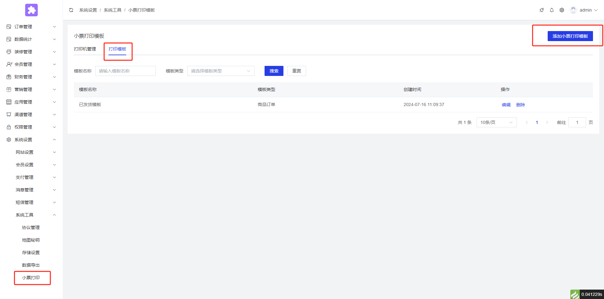 12.添加小票打印模板