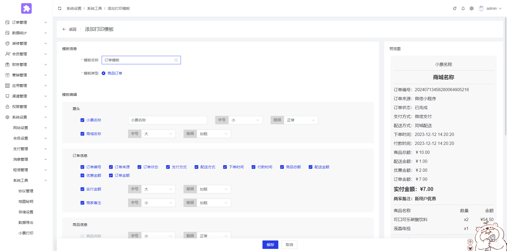 11.设置小票打印模板