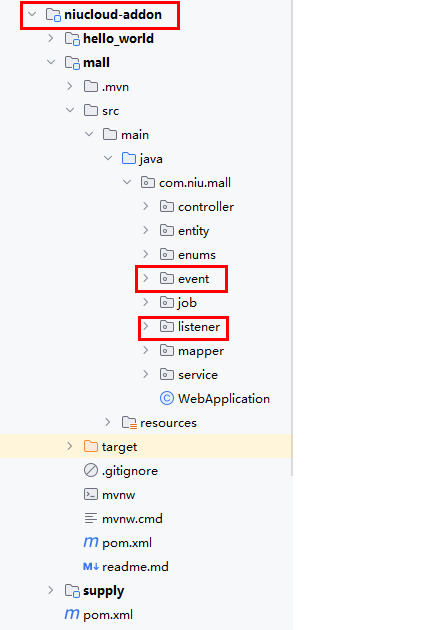 事件命名 event,监听命名 listener,包括系统定义的事件和插件定义的事件。具体文件夹如下: