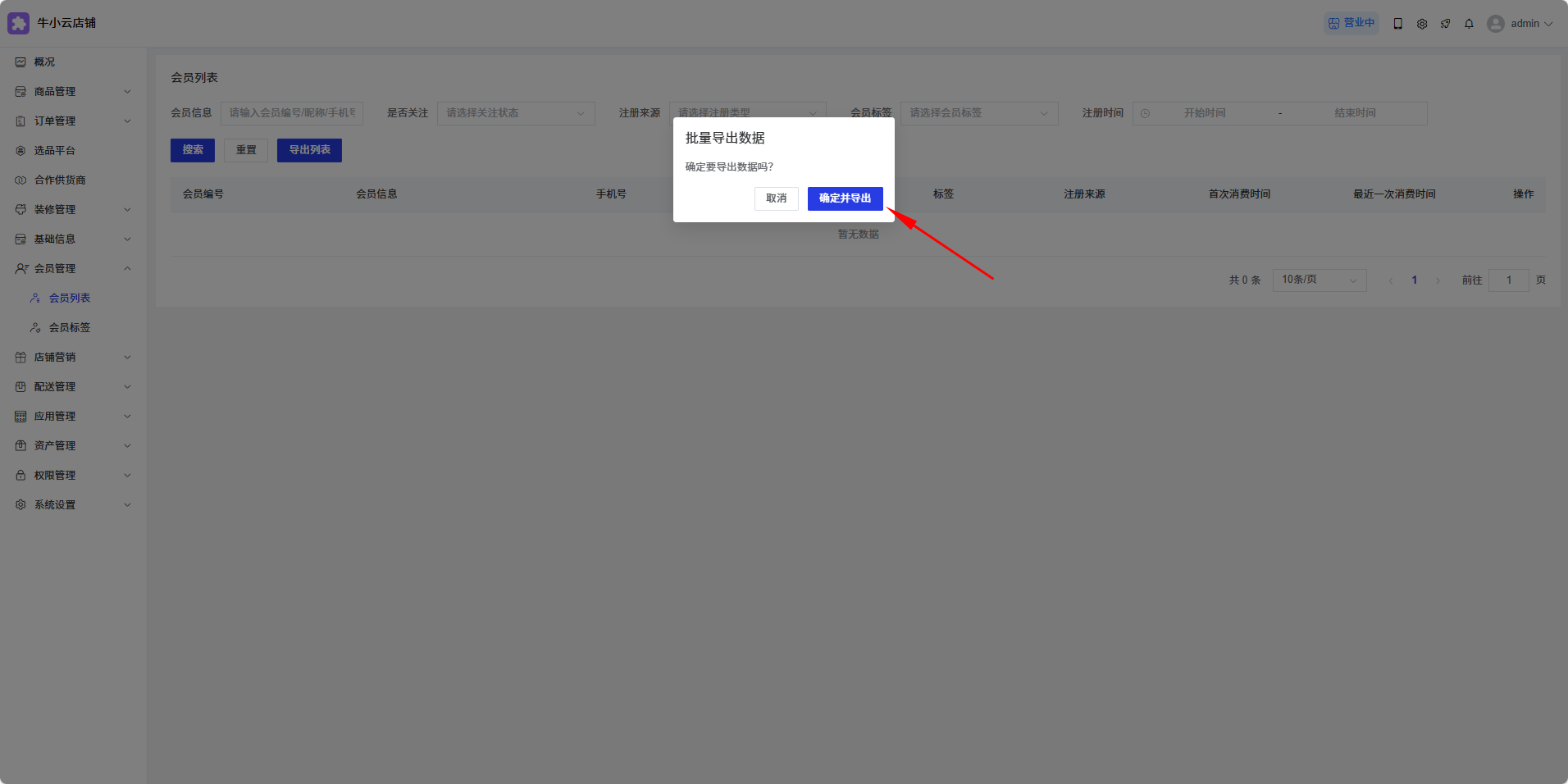以会员列表导出功能举例: