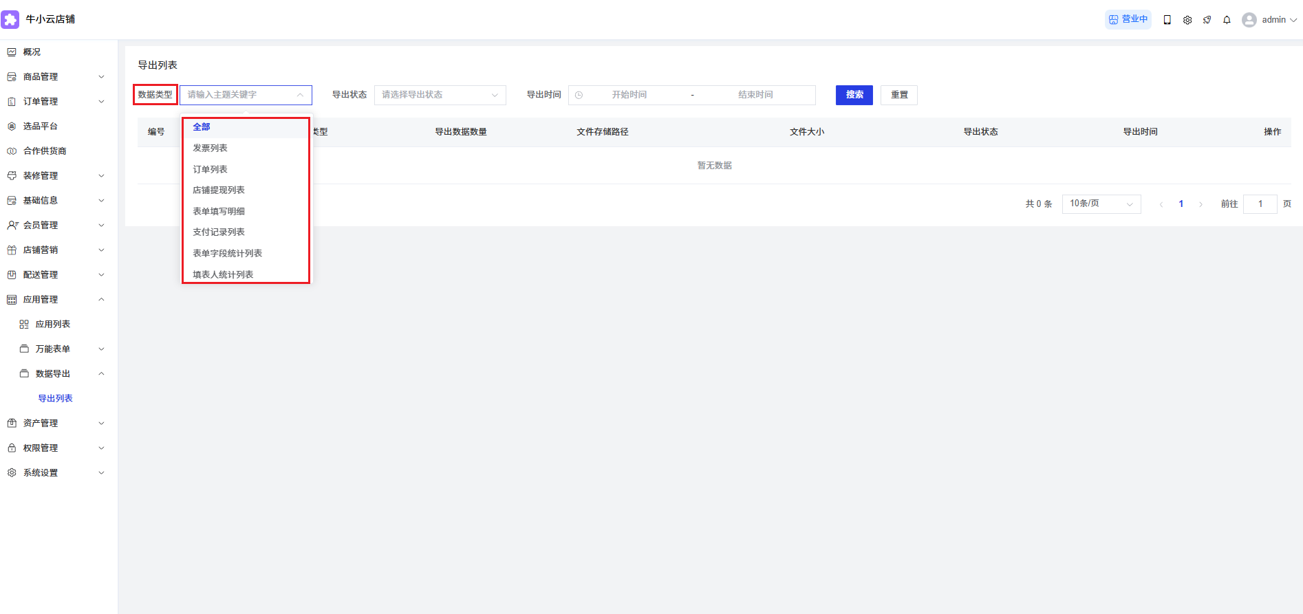 type:数据导出类型