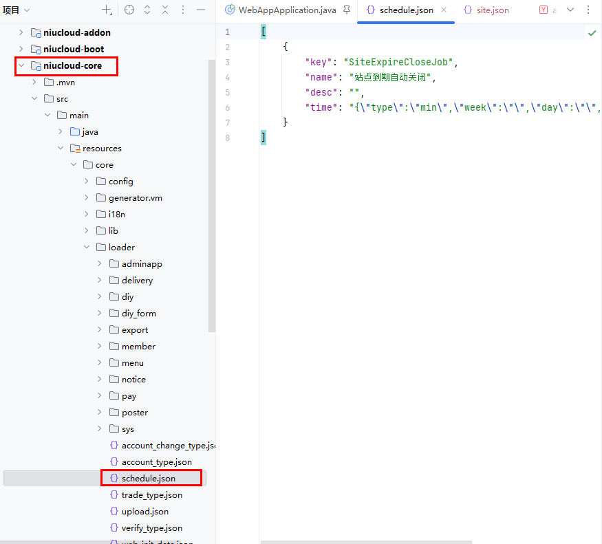 文件位置:niucloud-core/src/main/resources/core/loader/schedule.json
