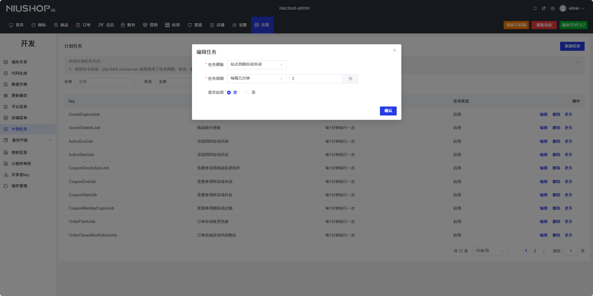 后台点击开发->计划任务->添加任务