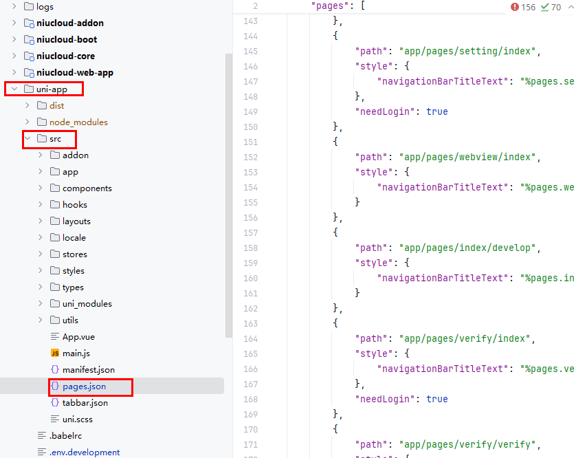 关于 uni-app 代码,基础的代码结构与 admin 相同,开发之前需要掌握 uniapp 基础知识以及 vue3 知识,注意开发页面需要在 pages.json 定义,这个与后台不同