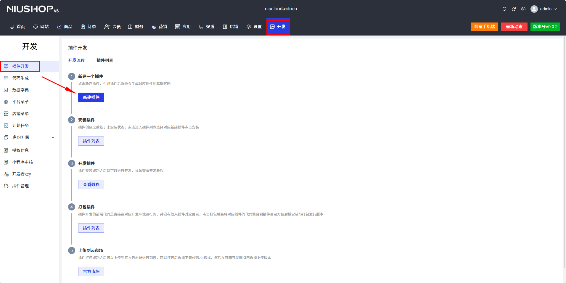 点击开发 -> 插件开发 -> 开发流程 -> 新建插件