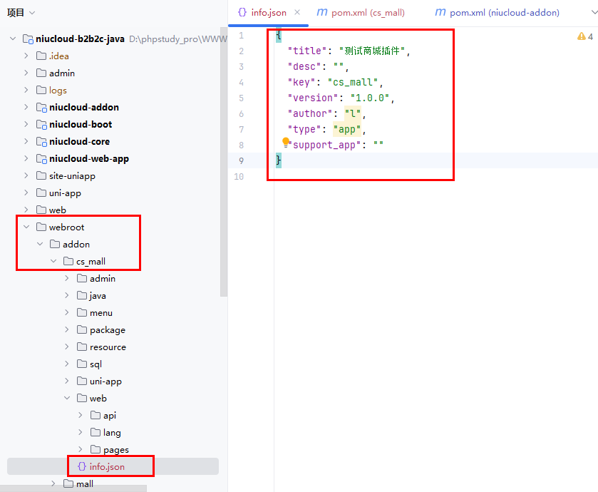 自动生成的插件或者购买插件下载的安装包,info.json 会放在插件的根目录