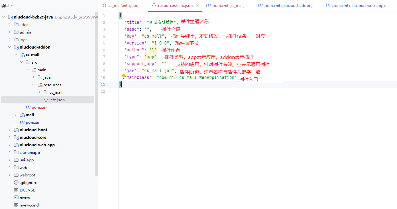 插件 info 各个字段的说明如下