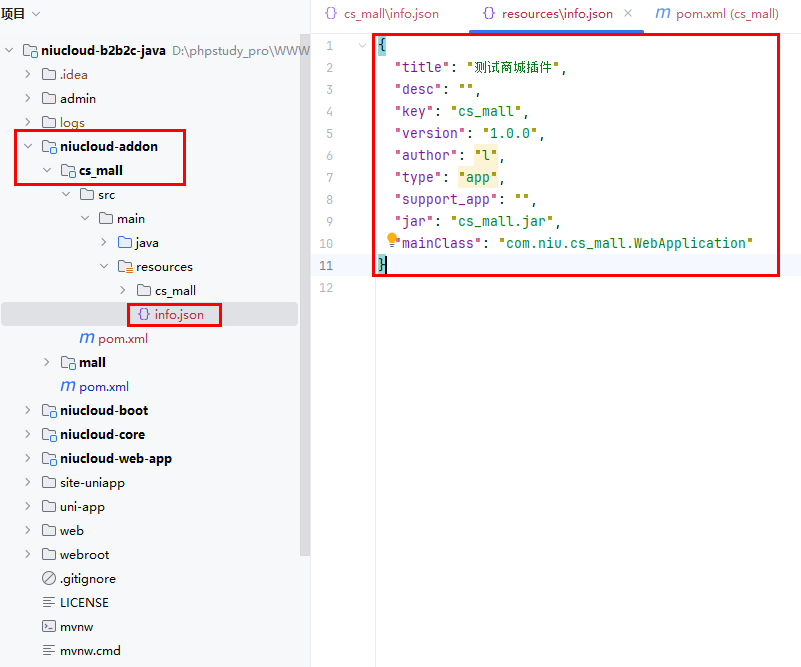 插件安装后插件 info 会复制到插件的 resources 下面