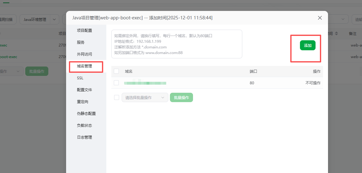 password: 如果Redis服务有密码也需要进行配置域名管理