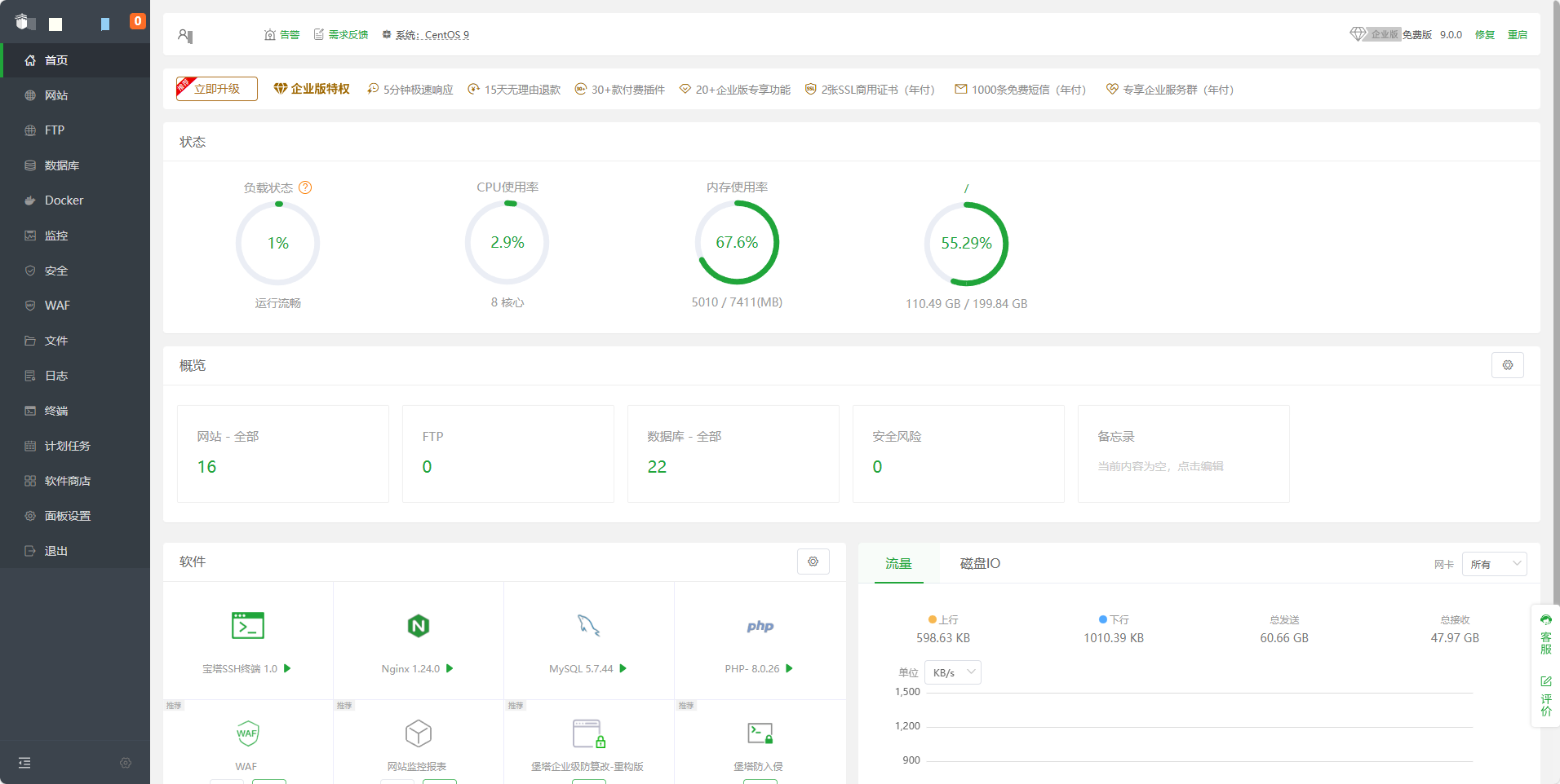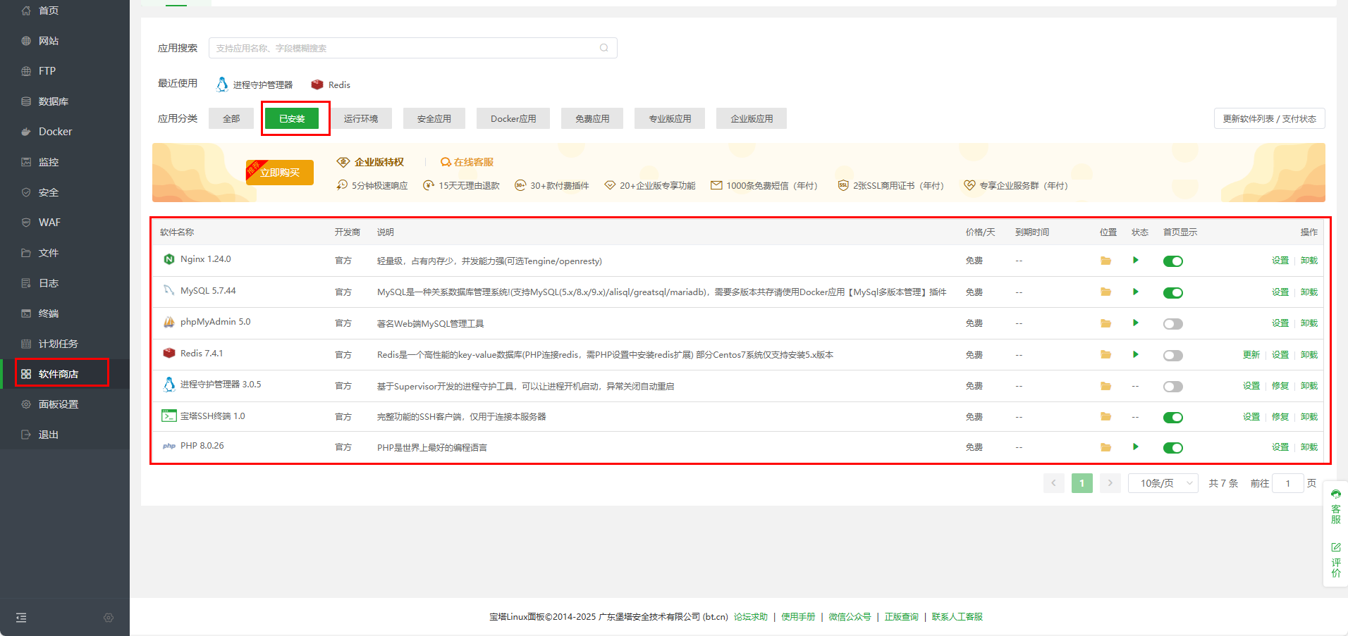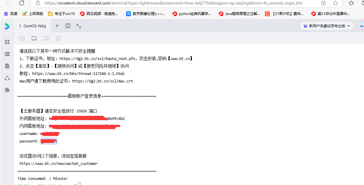 安装宝塔面板,如果对 linux 命令行比较熟悉也可通过命令行安装,目的是实现上述软件安装运行