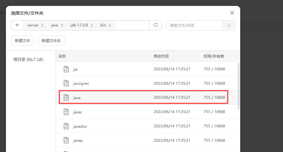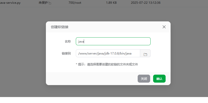 链接至 JDK 17.0.8 版本的 bin 目录的 java 可执行文件