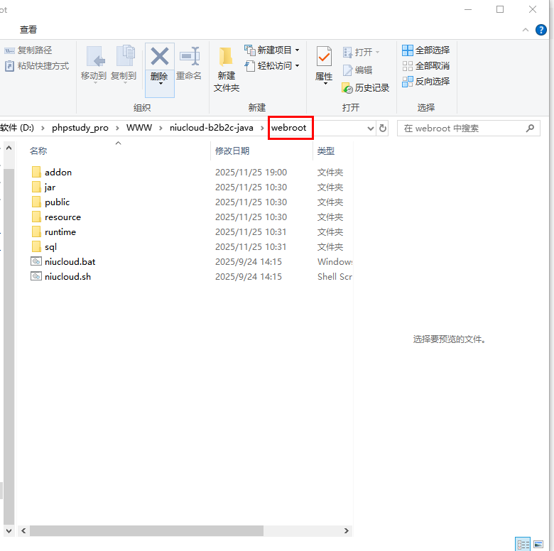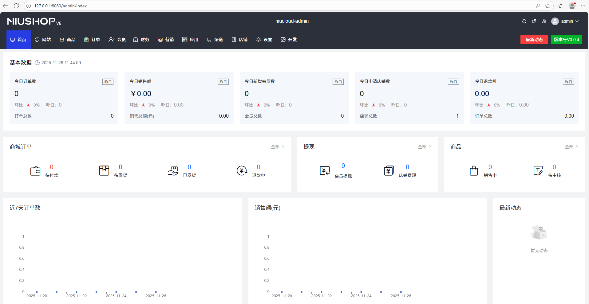 双击脚本: webroot/niucloud.bat运行,选择: 1