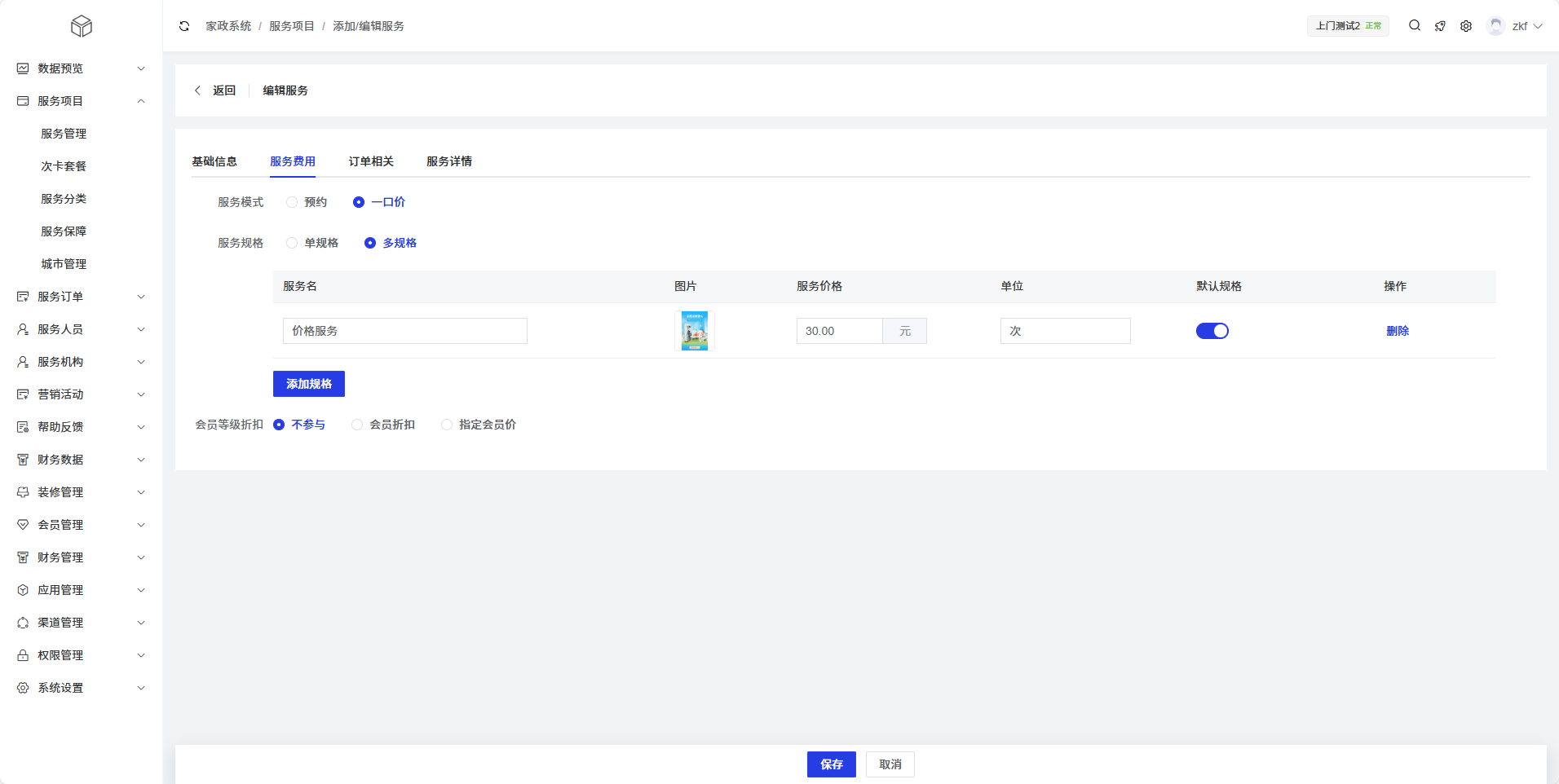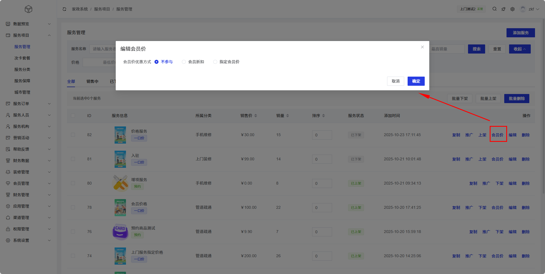参与会员价:为服务开启会员价功能