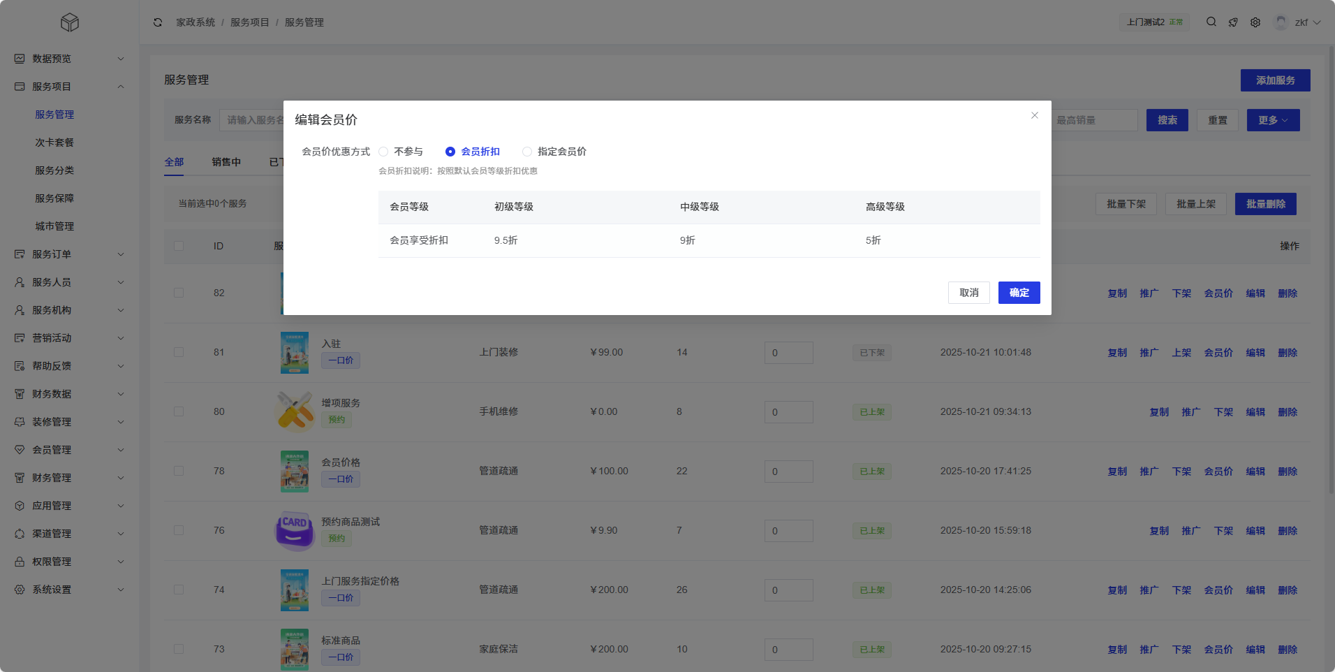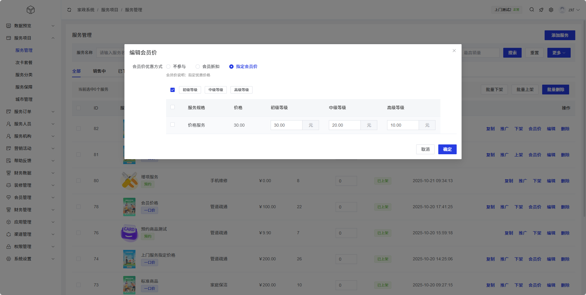 服务管理模块支持为不同会员等级设置差异化价格,提升会员价值和促进会员转化。