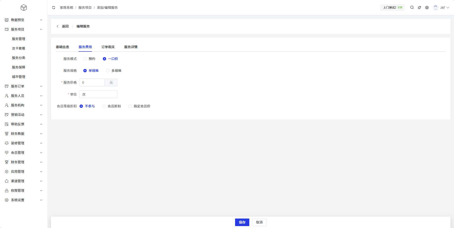 不参与会员价:关闭该服务的会员优惠功能