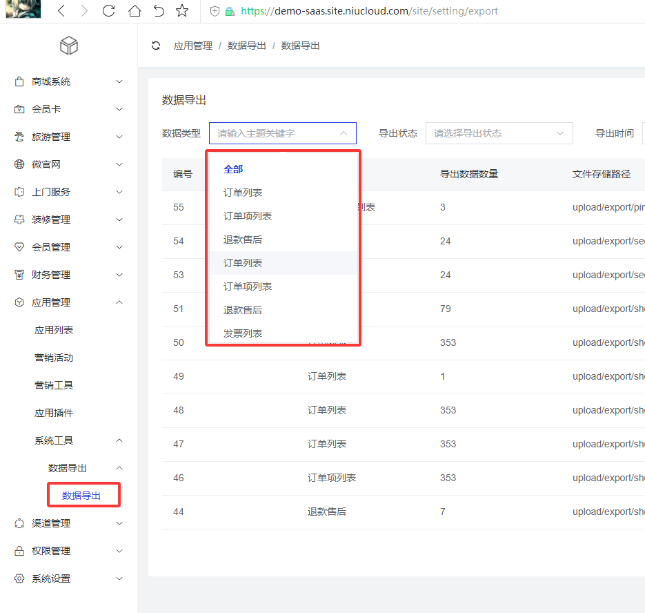 导出数据类型详细开发文档参考:导出数据开发